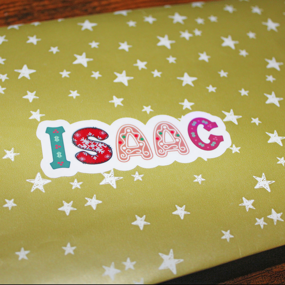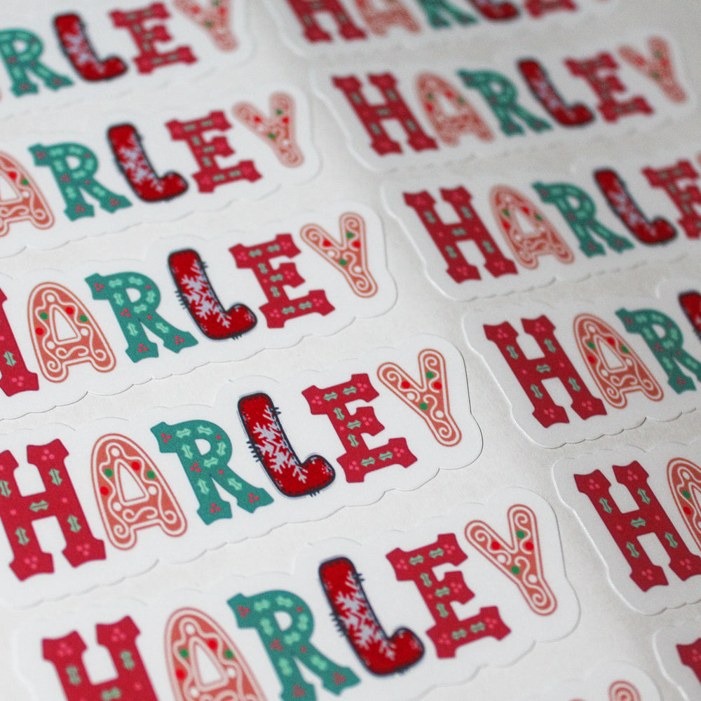 Personalised Christmas Name Sticker Sheet – 16 Mixed Festive Designs Matte Finish