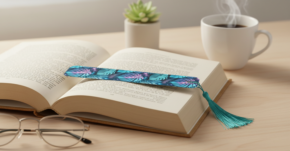 Neon Tropical Jungle Bookmark – Glow Leaf Pattern with Tassel (Matte Finish)