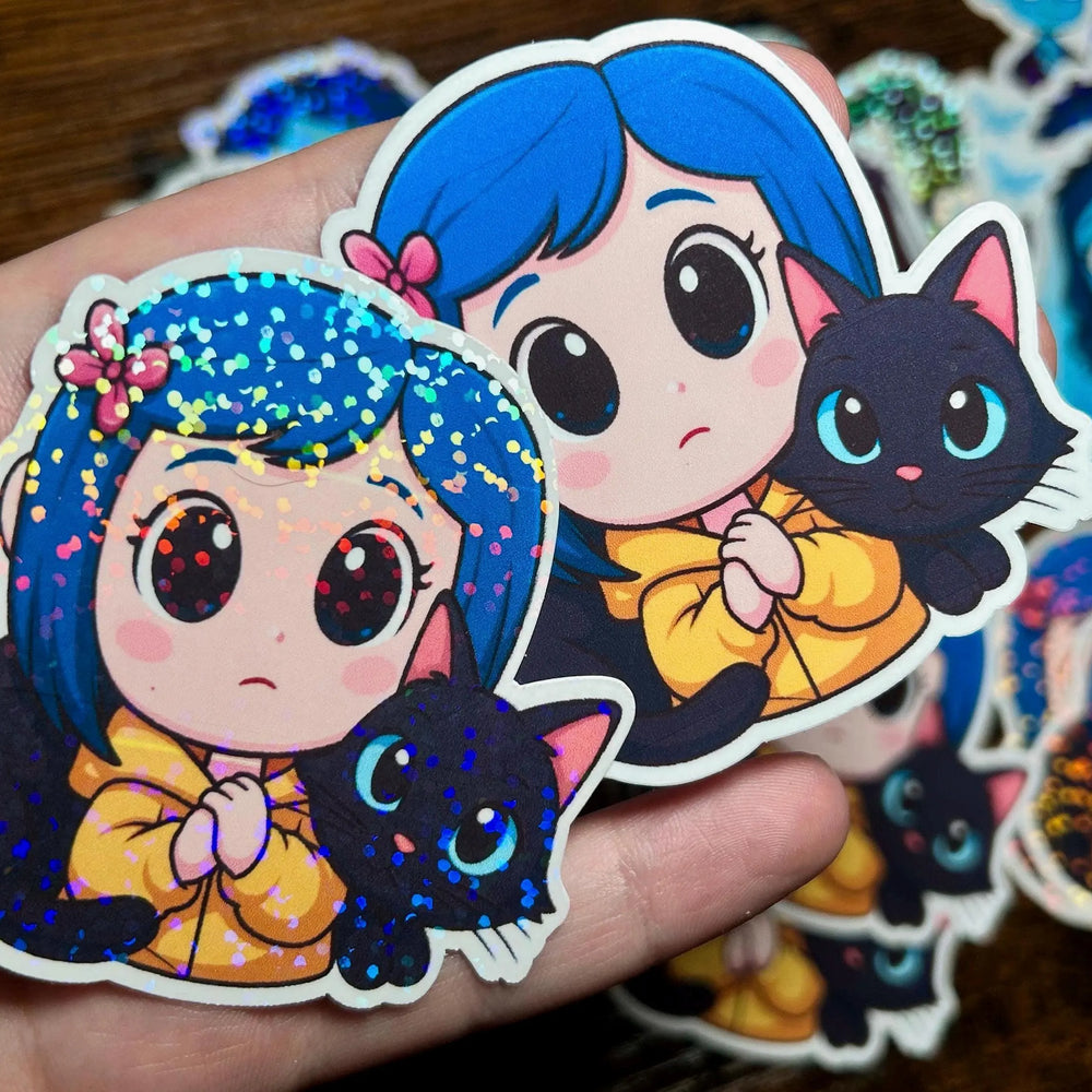 Button Chibi-Style Blue-Haired Girl