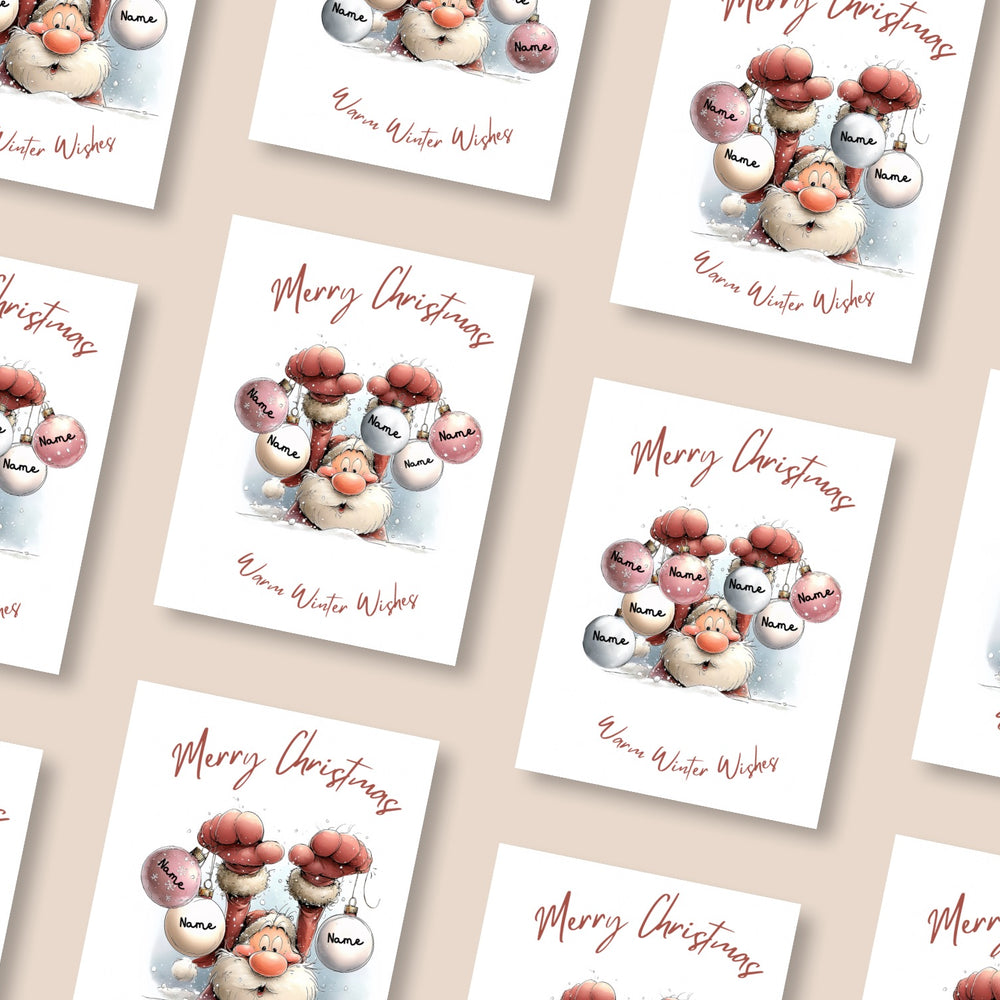 A beautiful personalised Christmas card for families of any size! Add 2–8 names to the baubles for a truly unique and thoughtful festive keepsake. Printed on premium A5 250gsm matte card with a fun Santa design and a branded Stick With Geo back. Great for parents, grandparents, couples, blended families or as a special gift. £3 per card or 4 for £10.