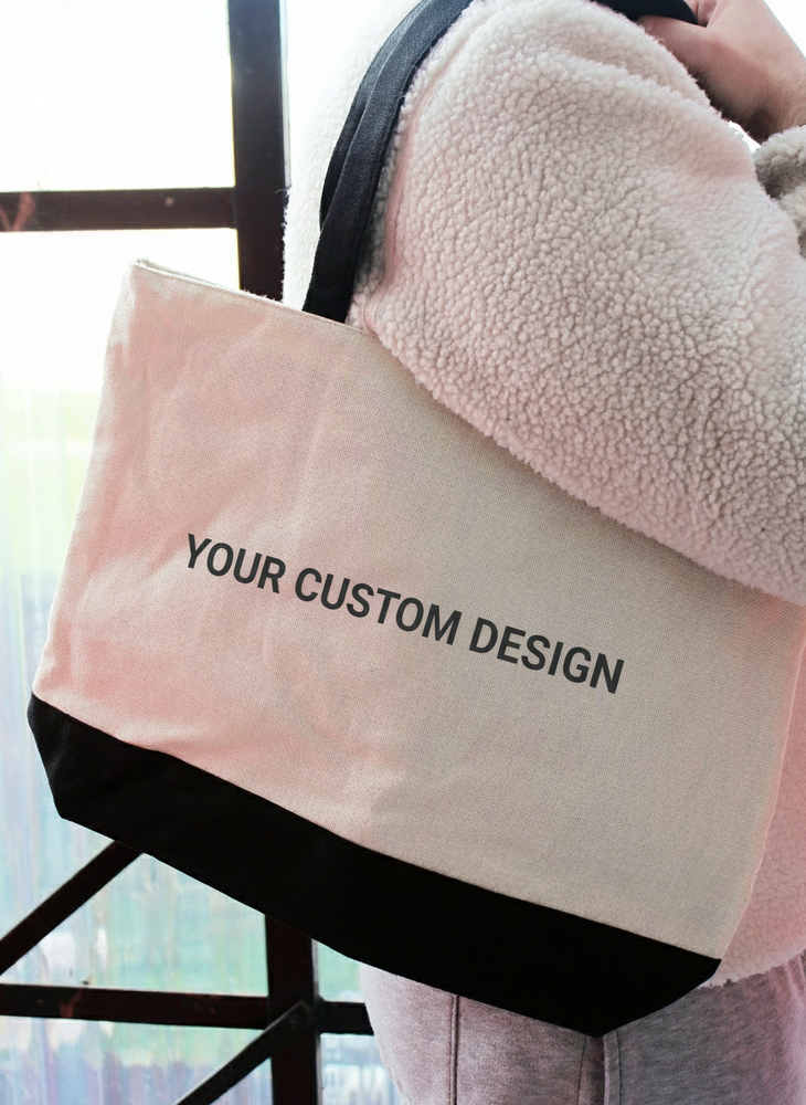 Custom Natural Linen Shopping Bag with Black Base – 36 × 48 cm | Large Capacity | Zipped Tote Bag