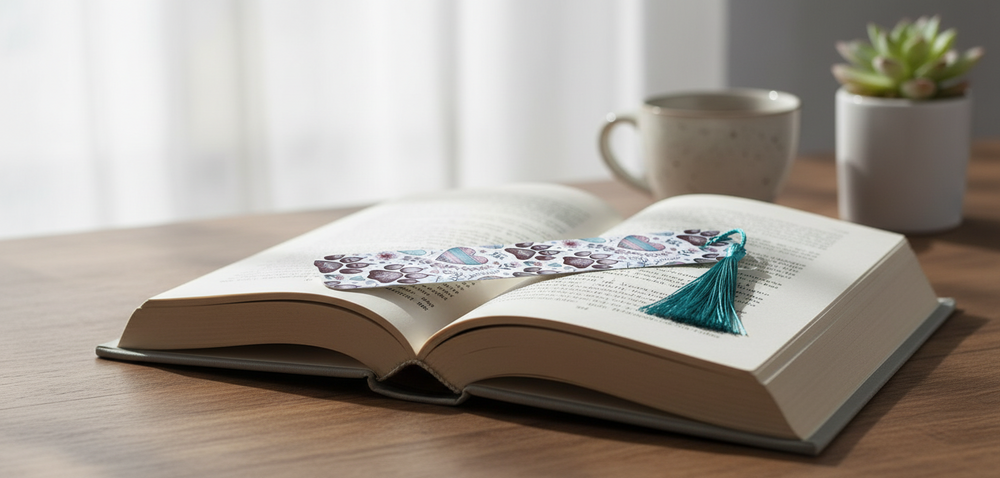 Paw Print Hearts Bookmark – Cute Pet Lover Design with Tassel