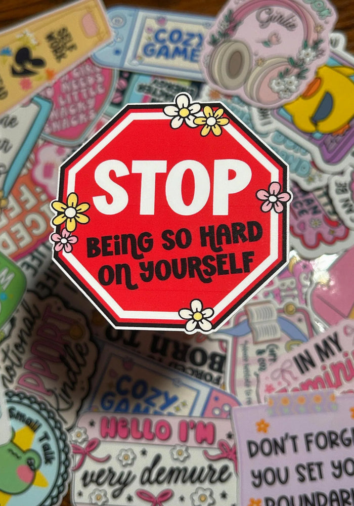 Stop Being So Hard on Yourself Sticker | Motivational Positive Quote | Mental Health Reminder | Gloss Vinyl | Stick With Geo