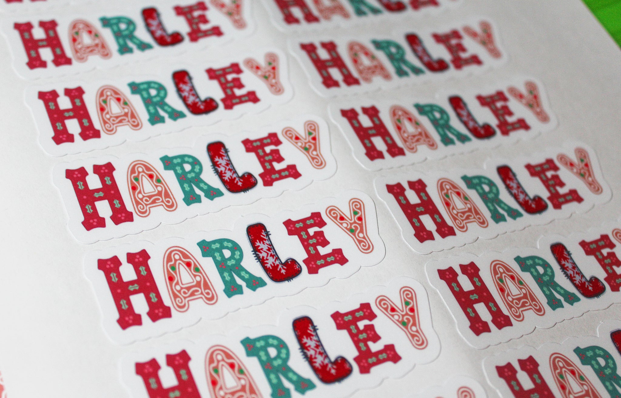 Each sheet features 16 individual name stickers, all beautifully designed with mixed festive Christmas fonts — gingerbread, snowflakes, candy cane, holly and more — creating a bright, colourful and fun look for every present.