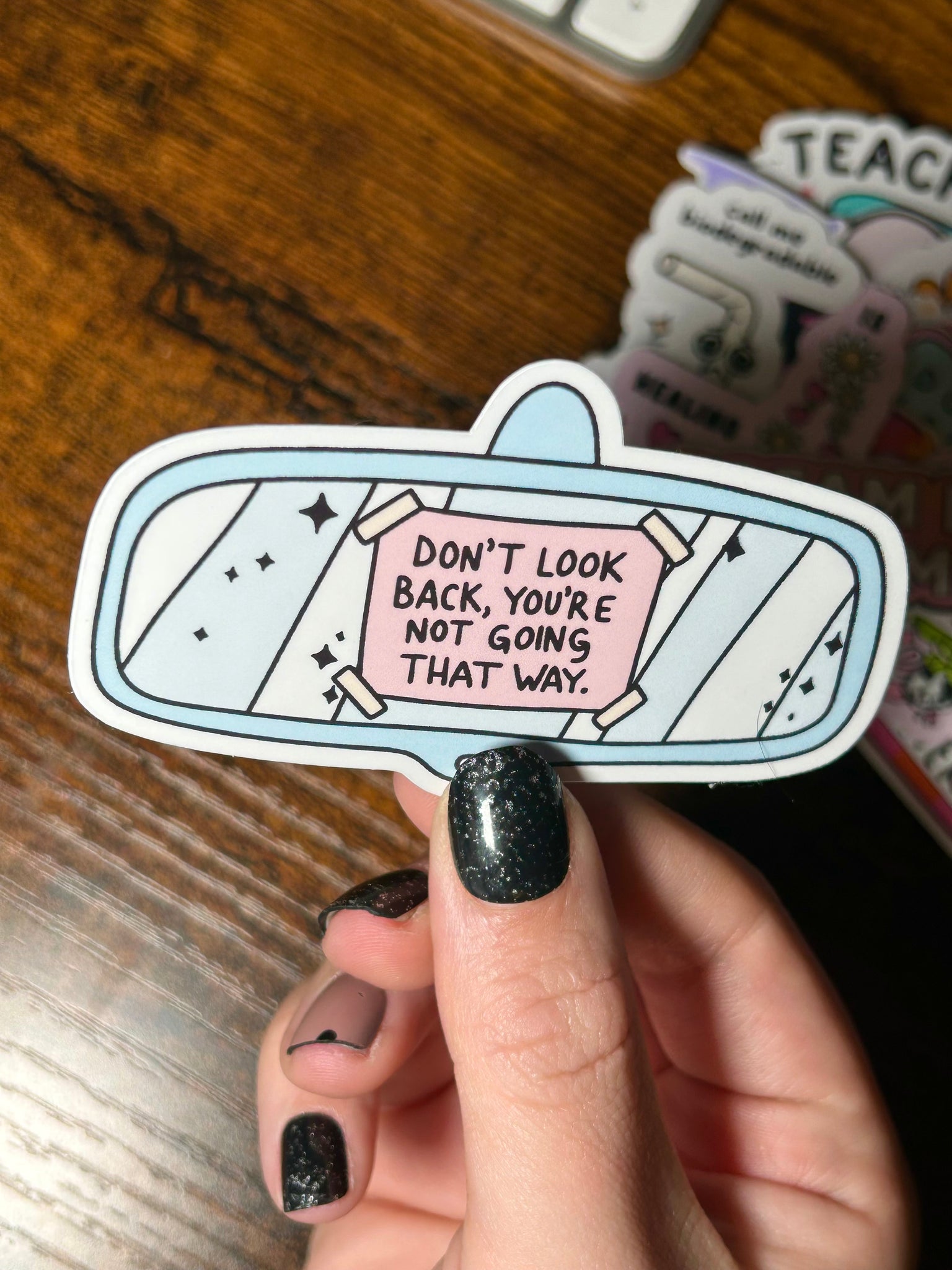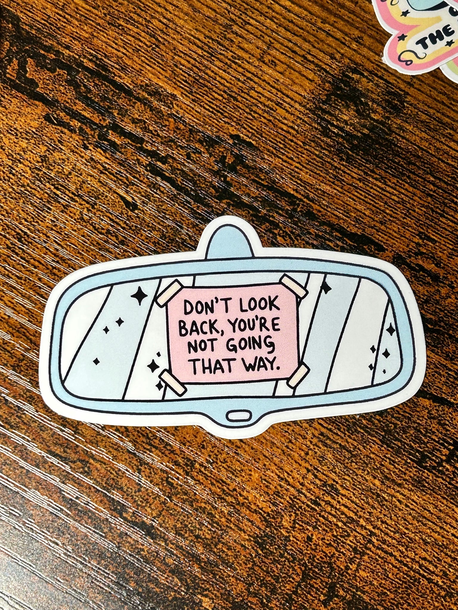 This “Don’t Look Back, You’re Not Going That Way” sticker is designed like a rear-view mirror for the perfect motivational twist. It’s the ideal pick-me-up for anyone chasing goals, building dreams, or needing a reminder to focus on what’s ahead.