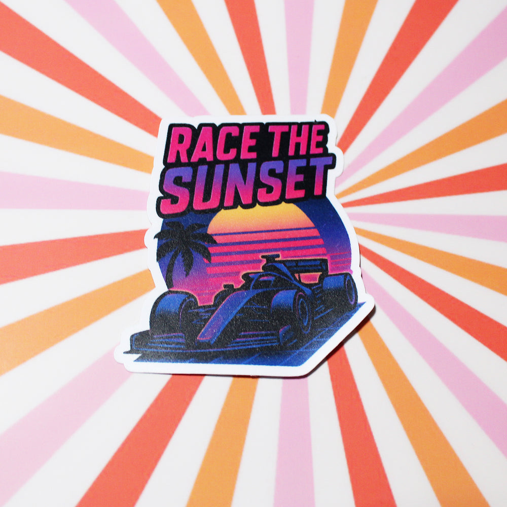 Race the Sunset – Synthwave Racing Sticker by Jam90five
