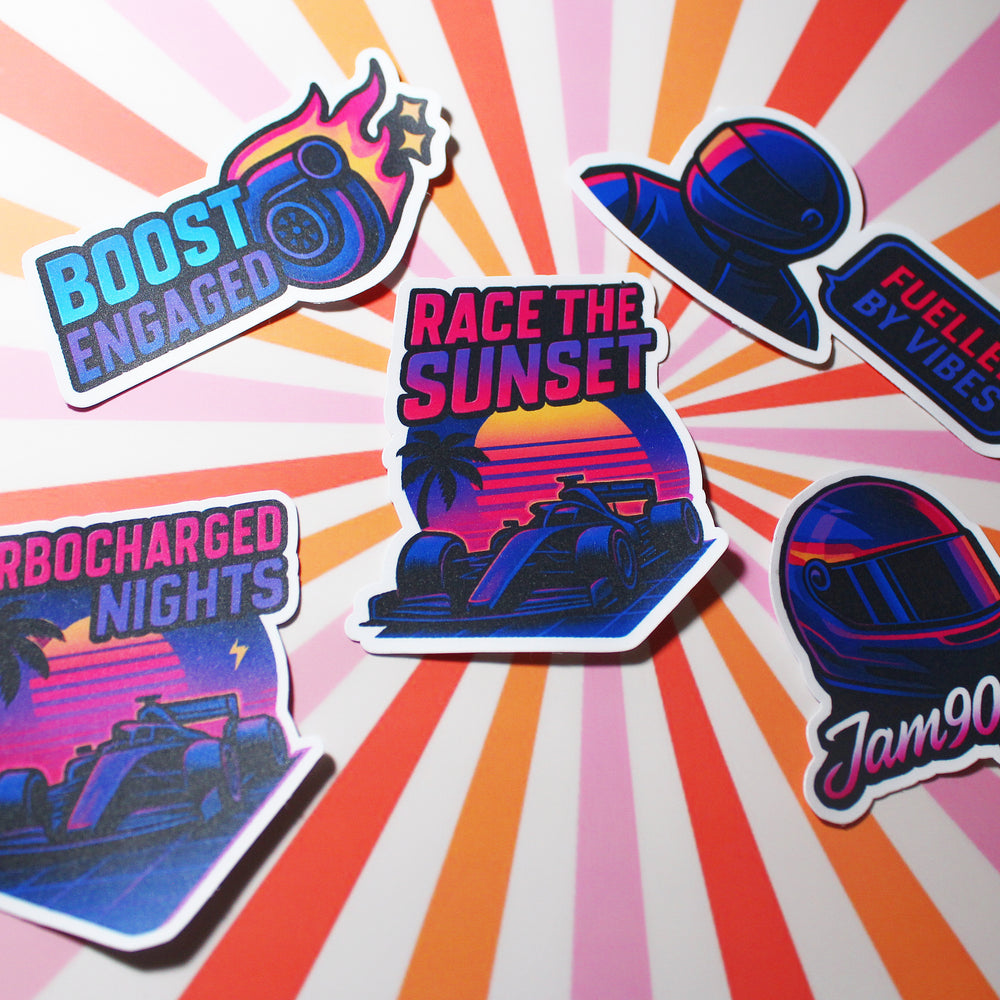 Jam90five Sticker Bundle – Full Synthwave Racing Collection