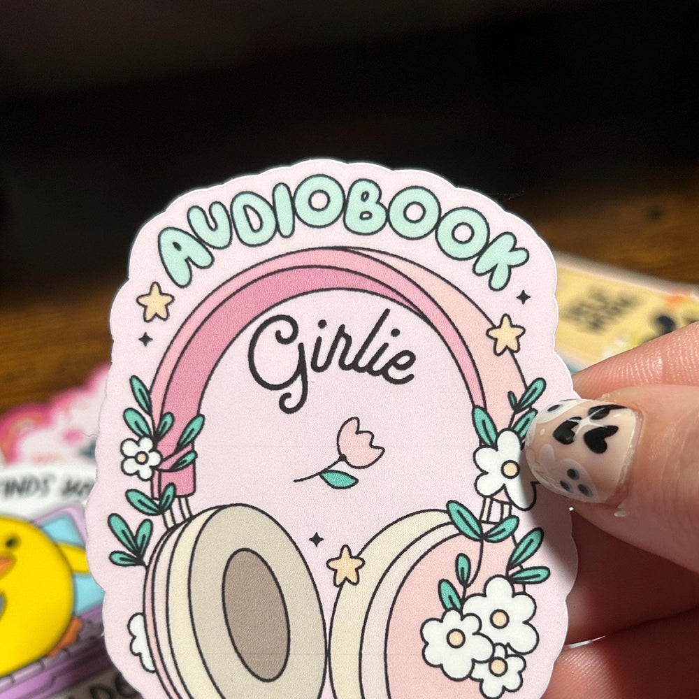 Audiobook Girlie Sticker | Book Lover Aesthetic | Cute Coquette Vinyl Sticker | Gloss Finish | Stick With Geo