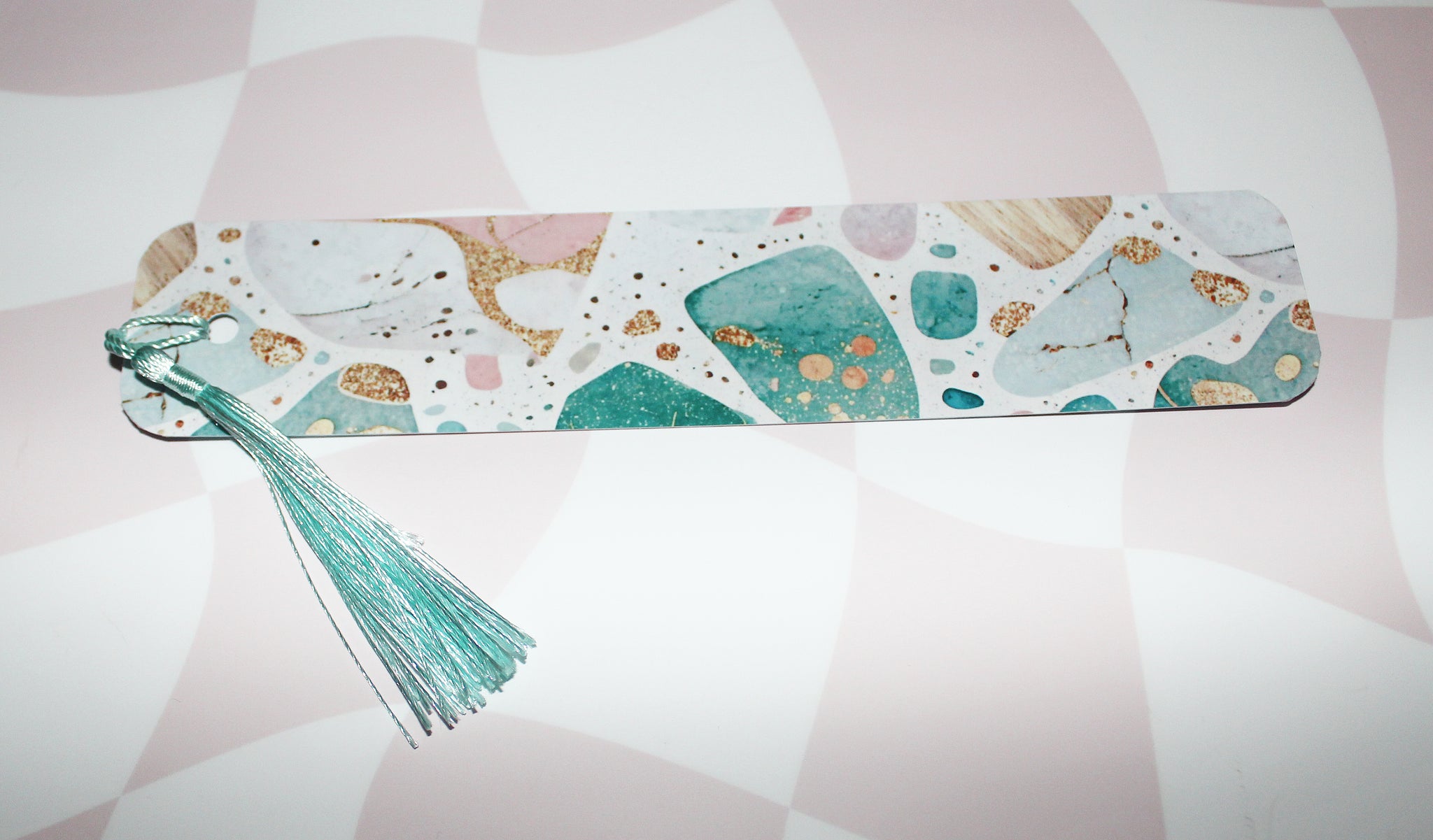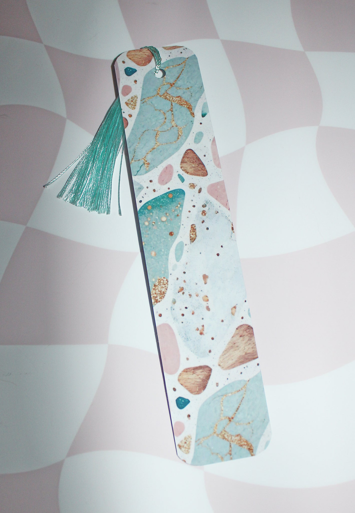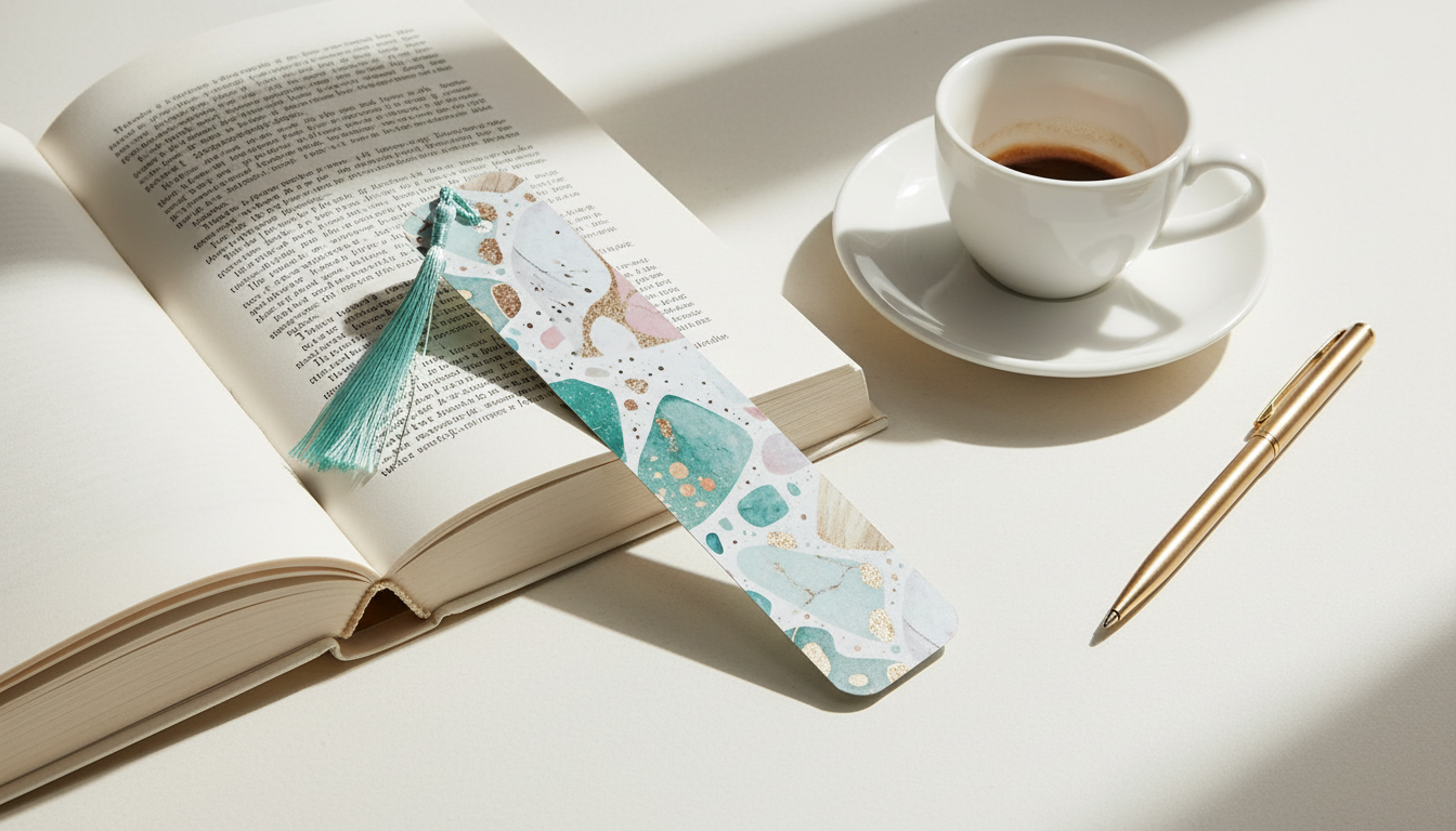 This pastel terrazzo aesthetic bookmark is the perfect mix of elegance and modern style. Featuring soft greens, pinks, creams and gold-style flecks, this design feels calming, classy and beautifully minimal.