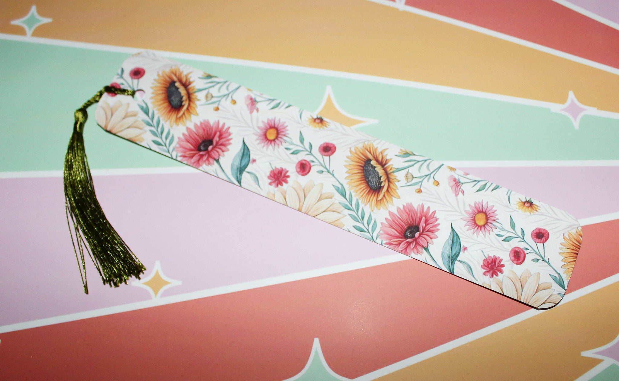 Sunflower & Wildflower Bookmark – Handmade Matte Bookmark with Tassel