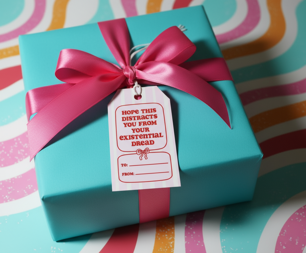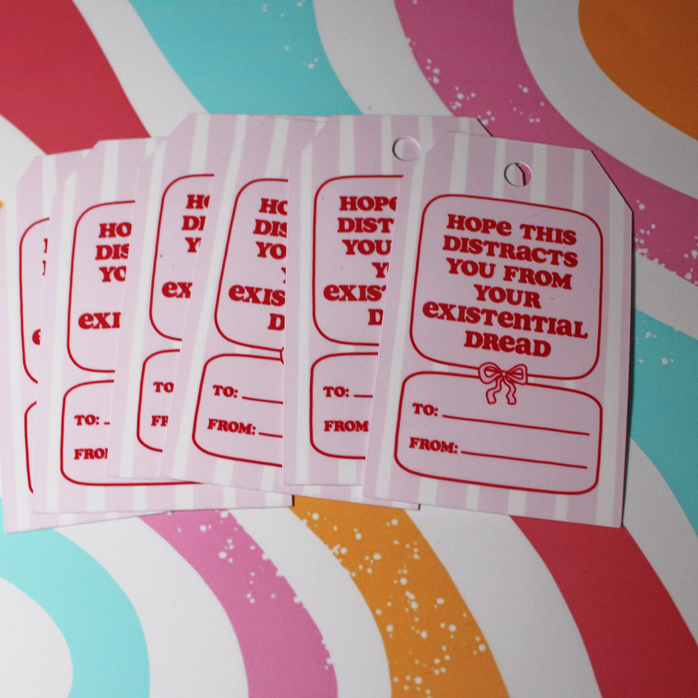 “Hope This Distracts You From Your Existential Dread” Mental Health Gift Tags – Pack of 6