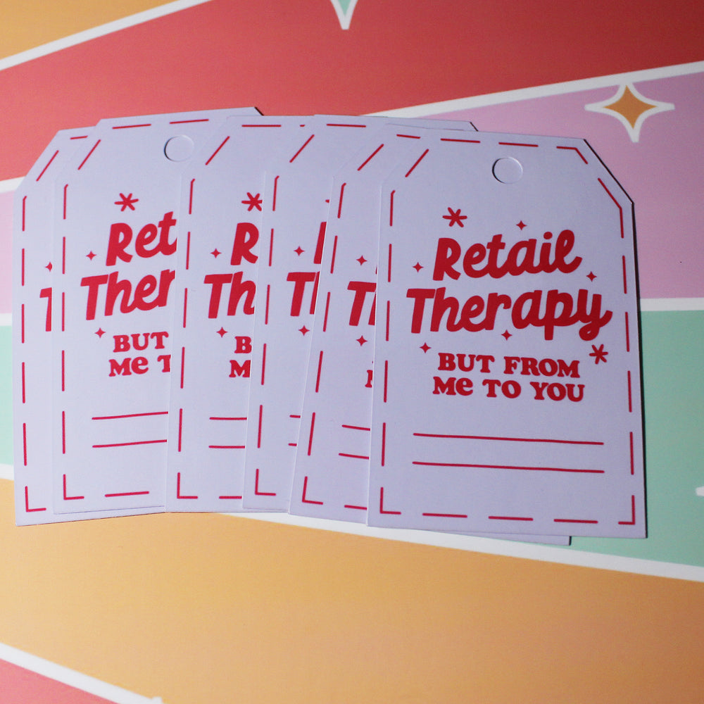 “Retail Therapy (But From Me to You)” Funny Gift Tags – Pack of 6