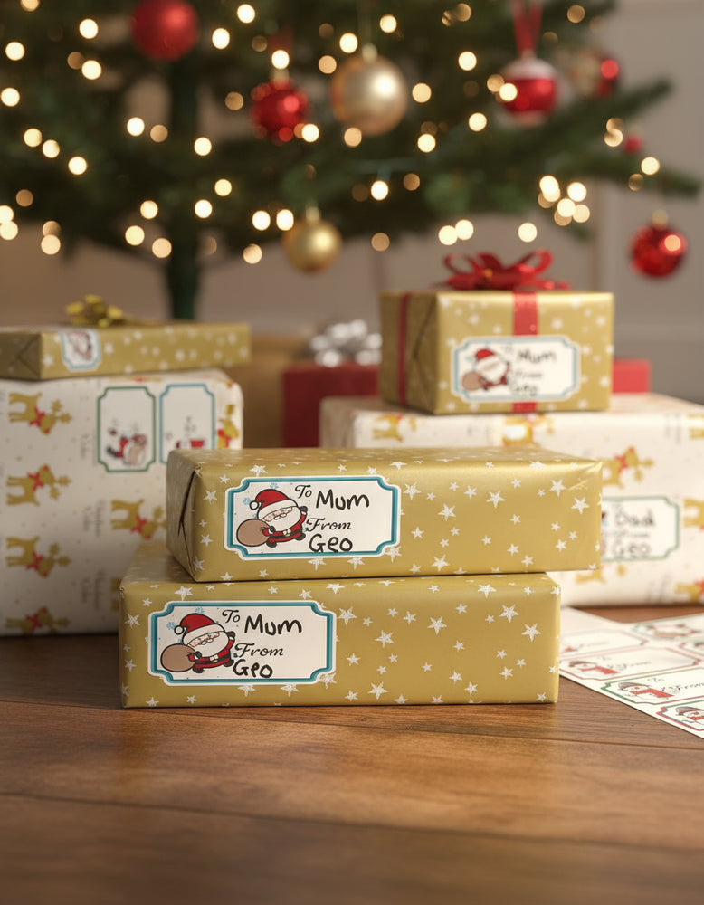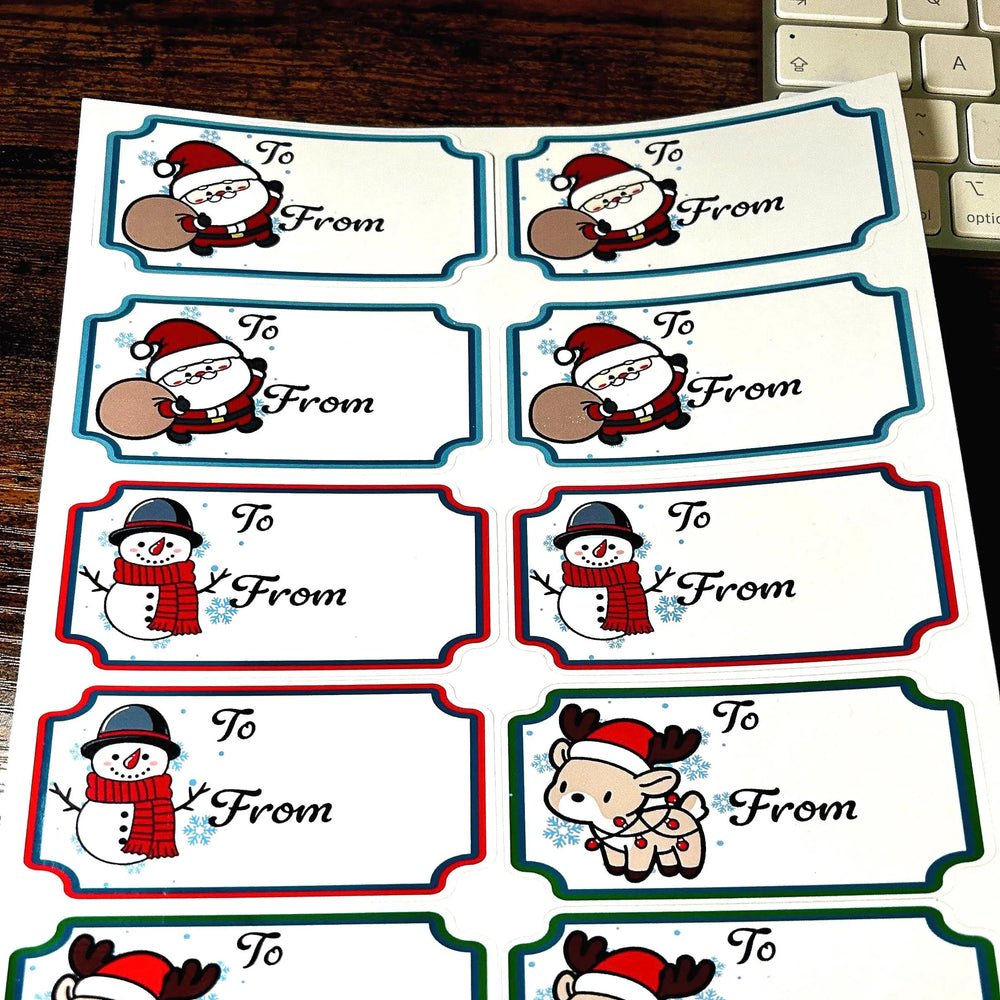 Blank Christmas Gift Tag Stickers – Santa, Snowman & Reindeer Designs