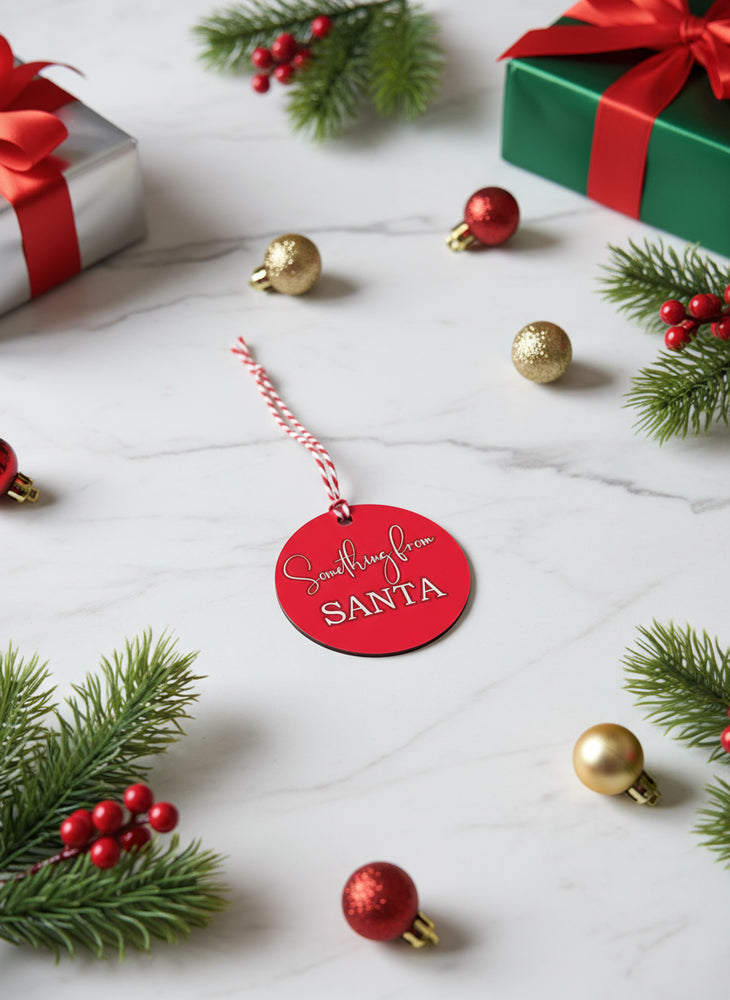 Something from Santa Gift Tags: Glossy Red Round Tags with String