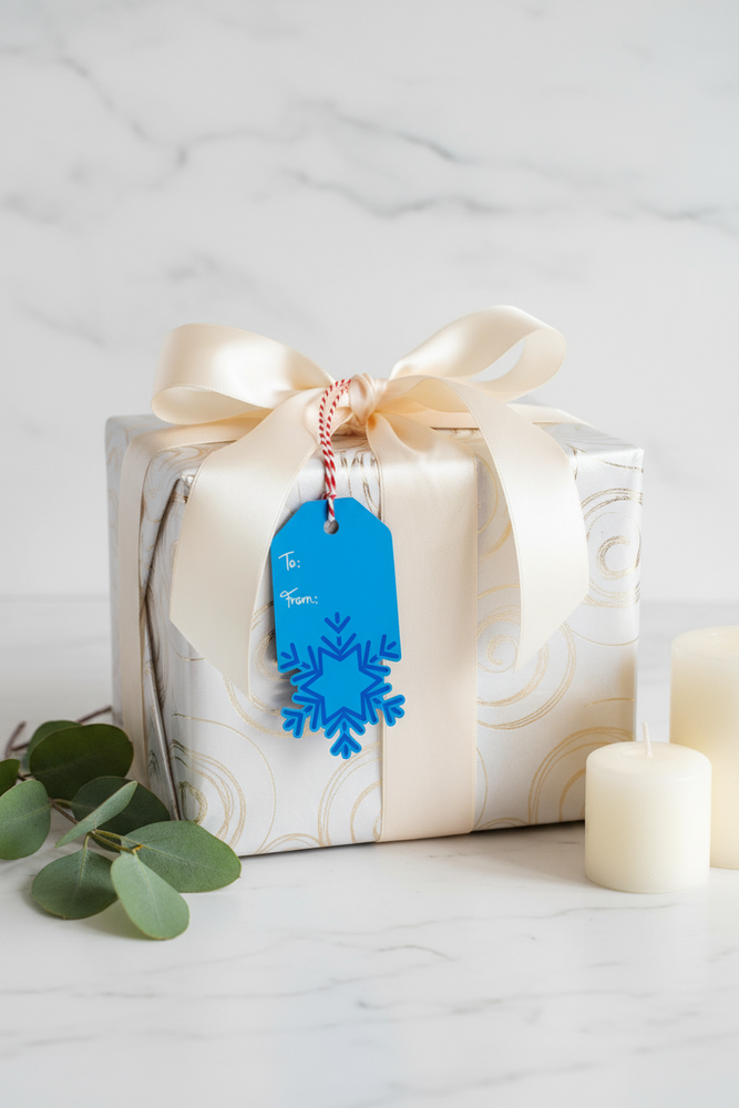 Blue Snowflake Christmas Gift Tags: Glossy Festive To/From Tags