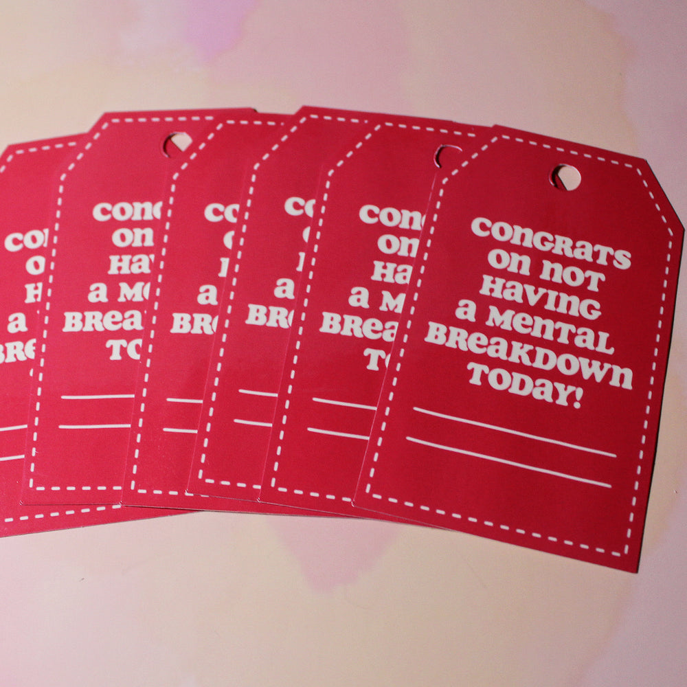 “Congrats on Not Having a Mental Breakdown Today” Funny Mental Health Gift Tags – Pack of 6