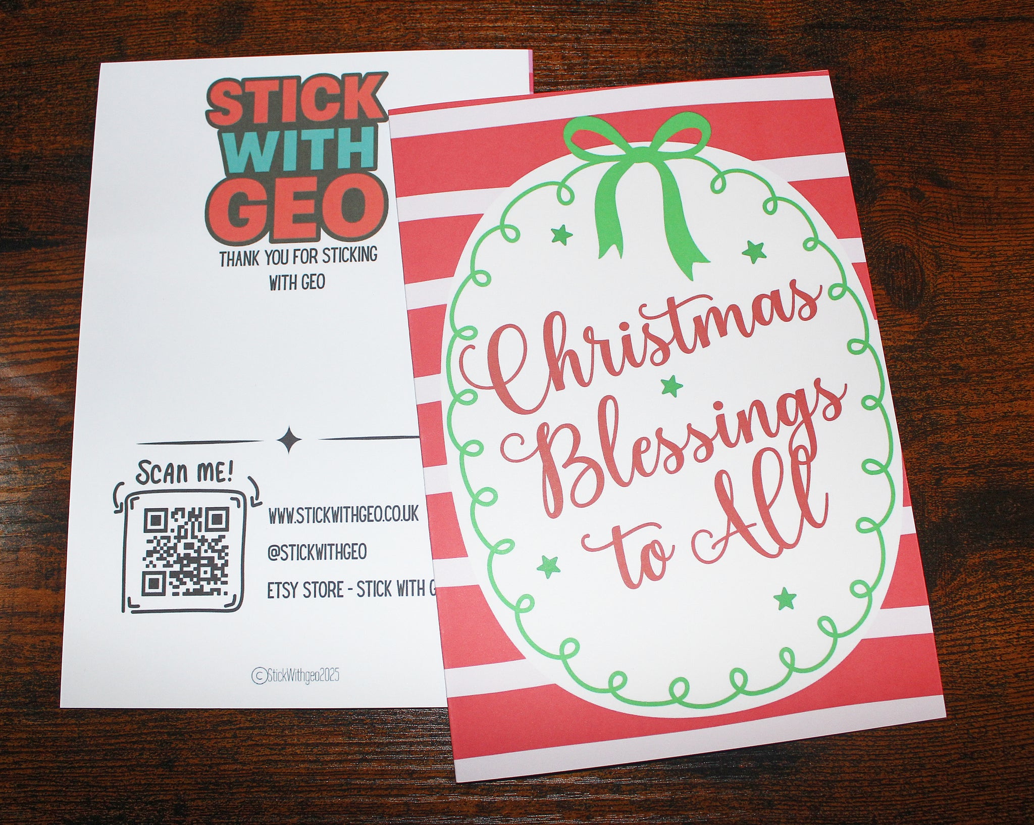 This traditional-yet-modern design features bold red stripes, a decorative green ribbon and elegant script lettering. Perfect for sending heartfelt Christmas blessings to friends, family, neighbours, church members or anyone who appreciates a faith-inspired festive card.