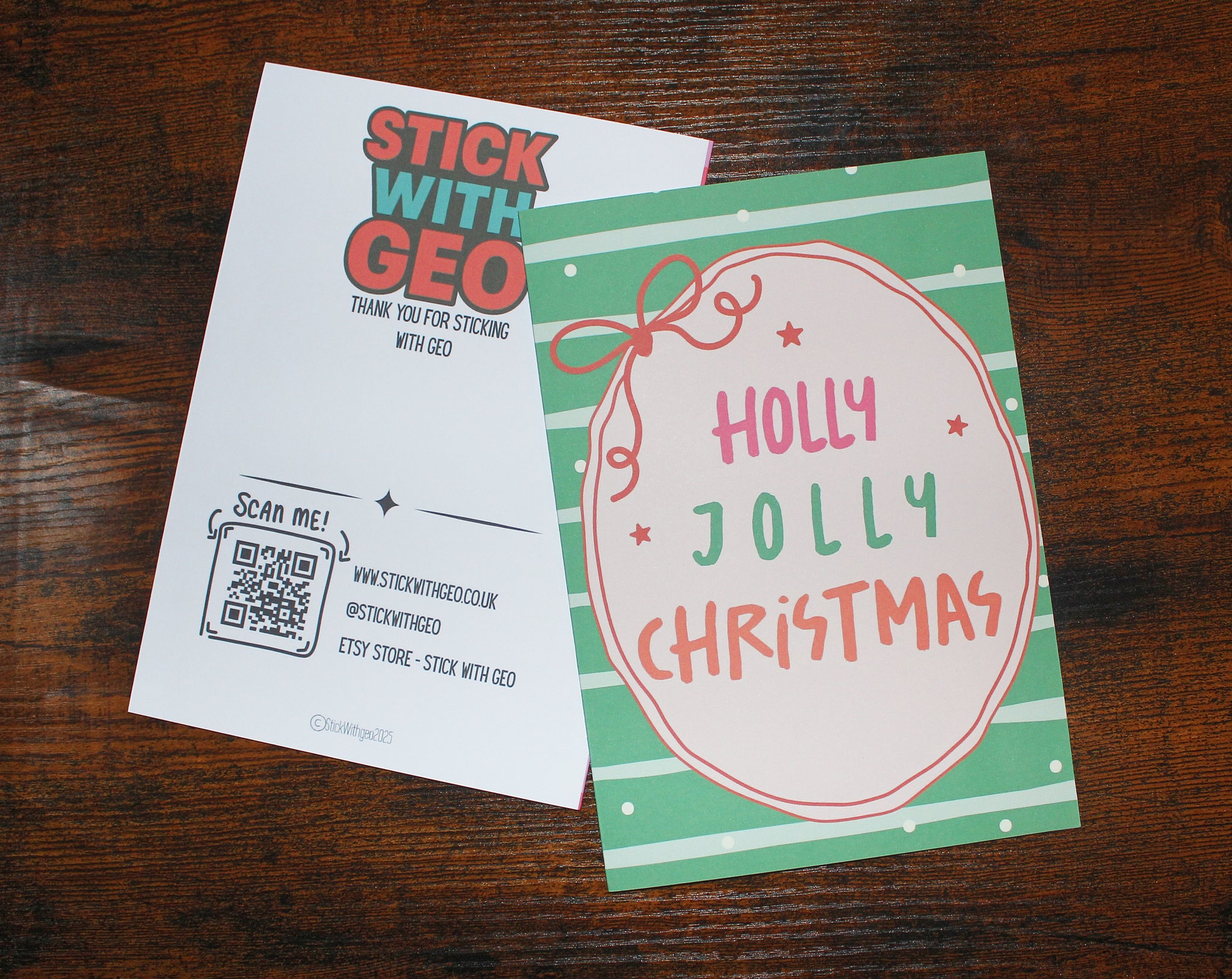 • Holly Jolly Christmas Card – A5 Matte Pastel Holiday Car
