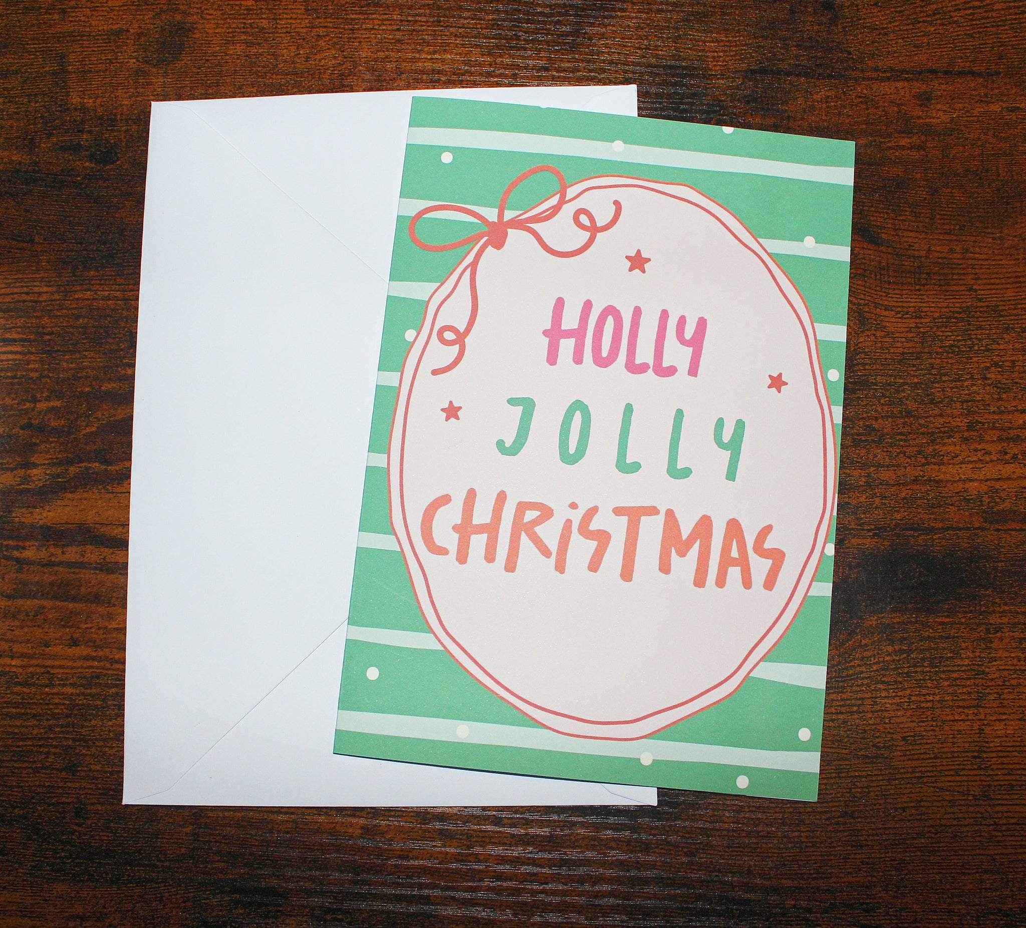 Holly Jolly Christmas Card – A5 Matte Pastel Holiday Car