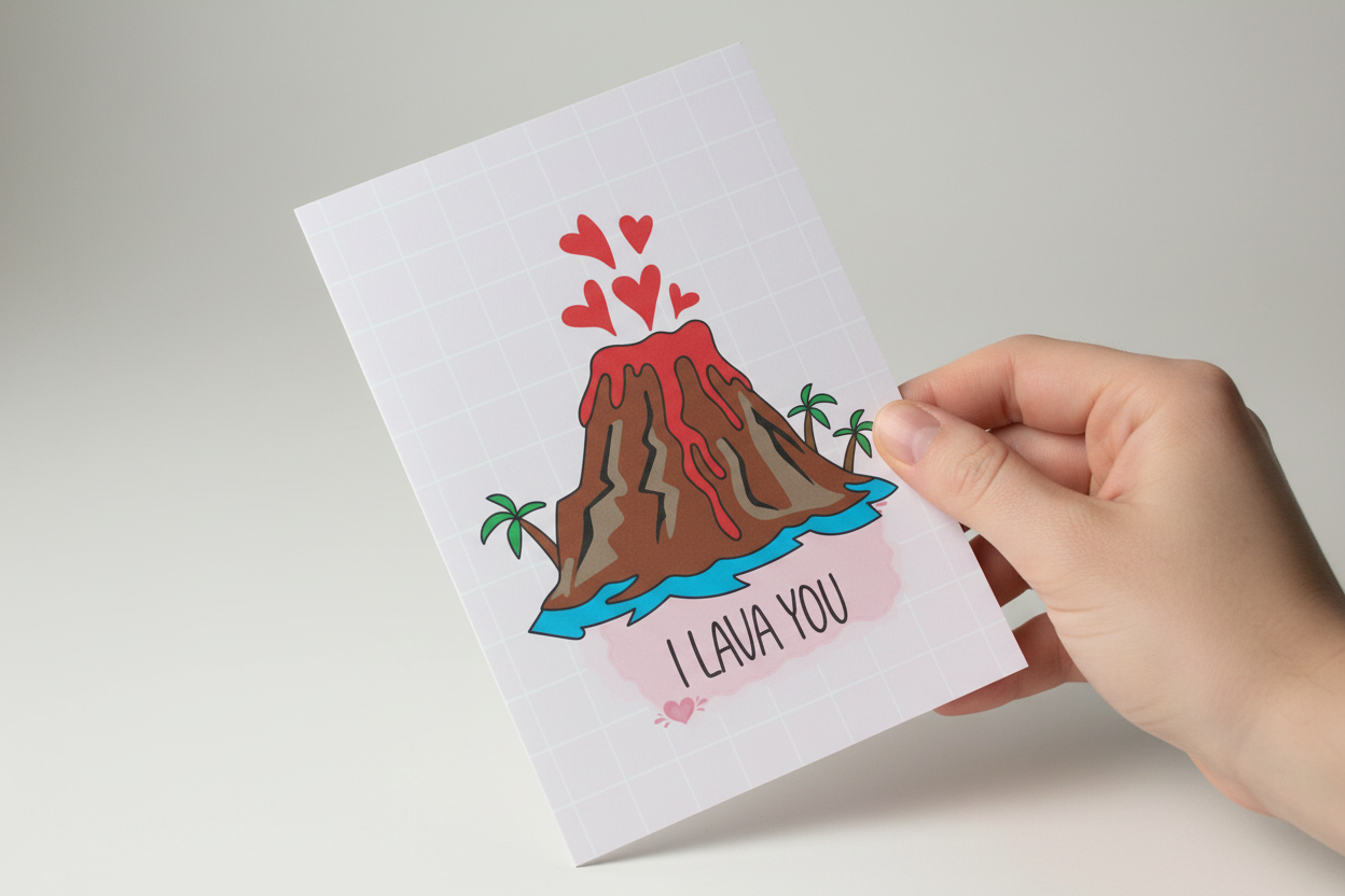 Tell someone you love them lava with this adorable “I Lava You” Valentine’s Day card. Featuring a cute volcano overflowing with hearts, this fun and romantic design is perfect for couples who enjoy playful puns and charming illustrations.