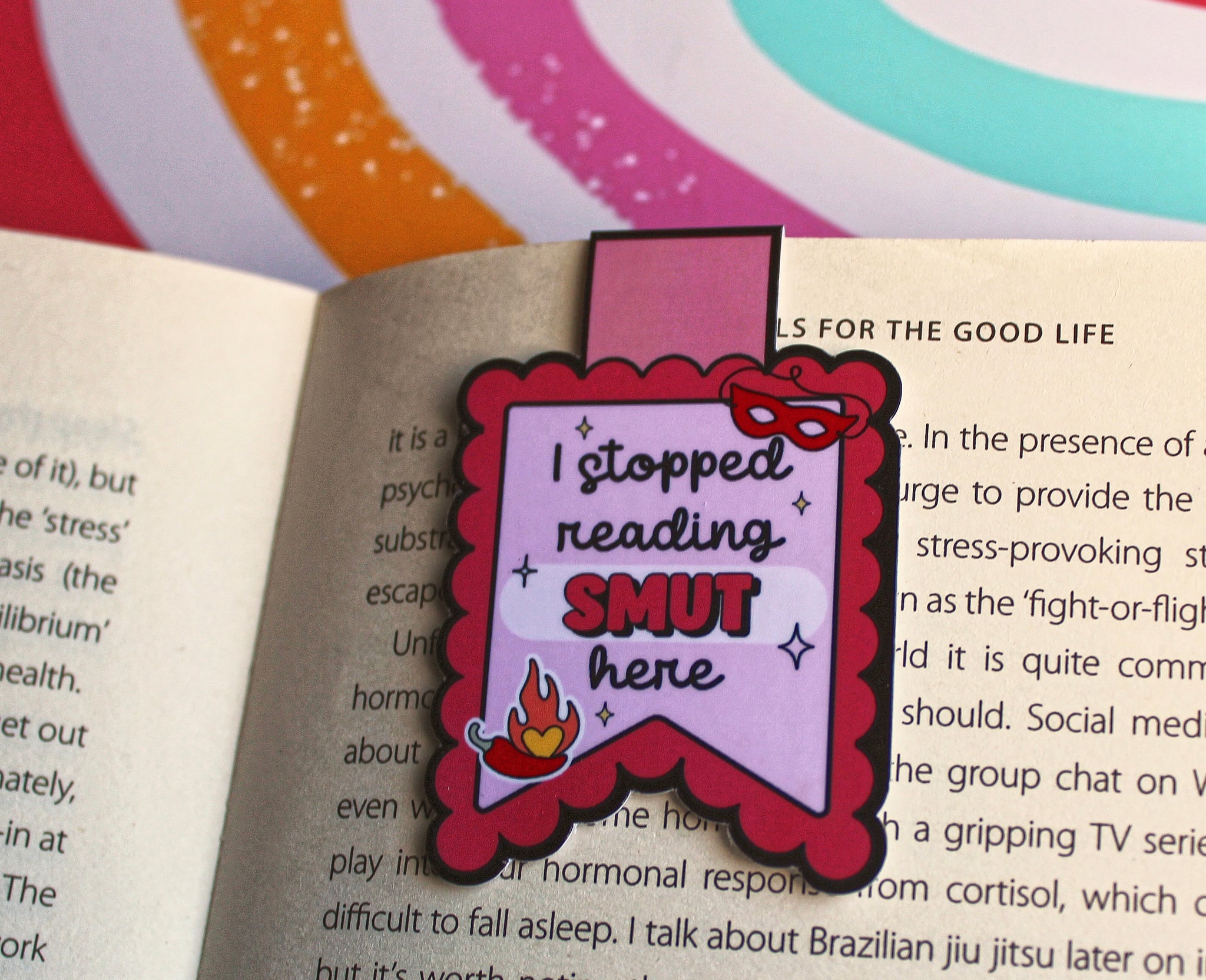 This “I Stopped Reading Spicy Scene Here” magnetic bookmark is a fun and cheeky must-have for book lovers who enjoy a little romance in their reads. Designed with a glossy laminated finish and strong magnets, it keeps your page safe — even through the steamiest chapters!