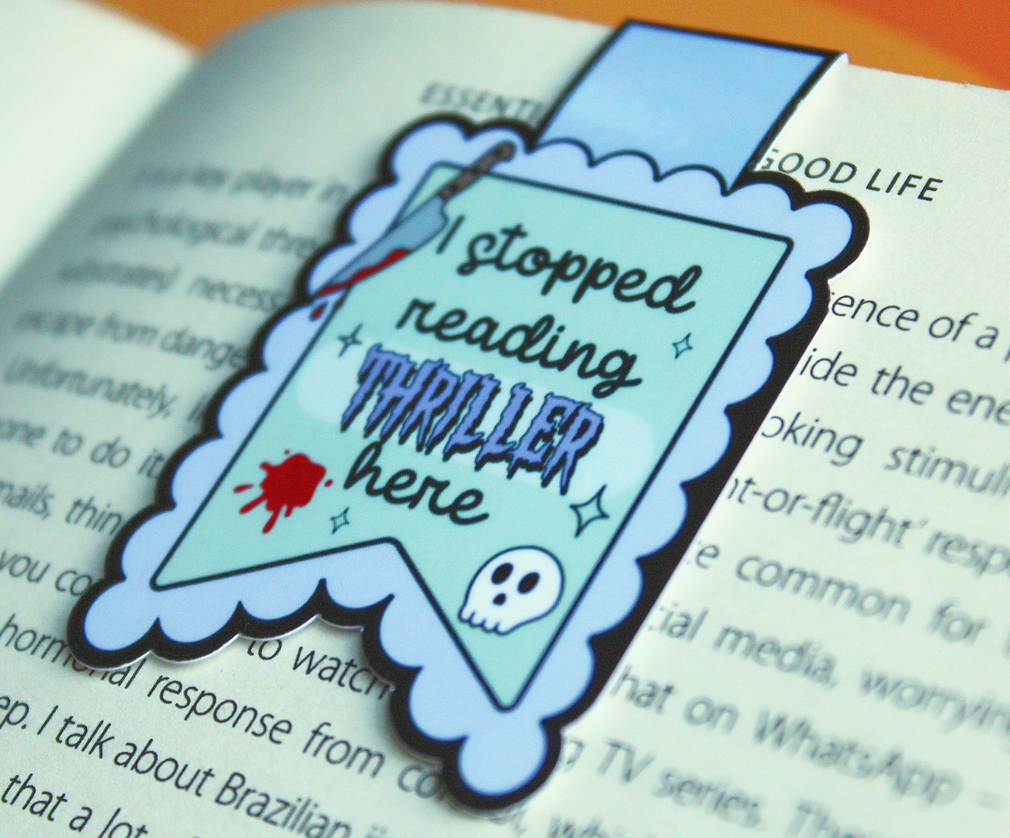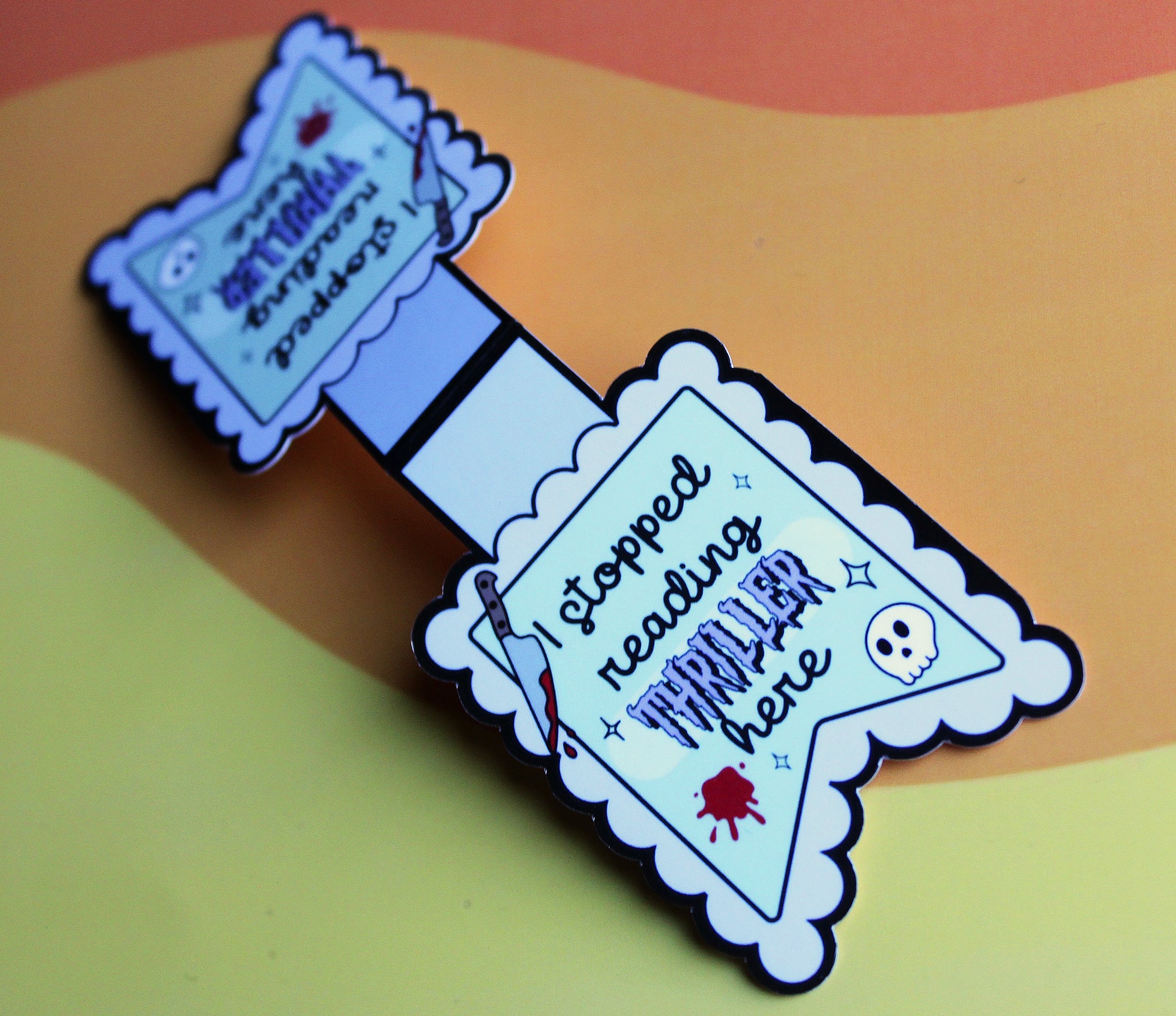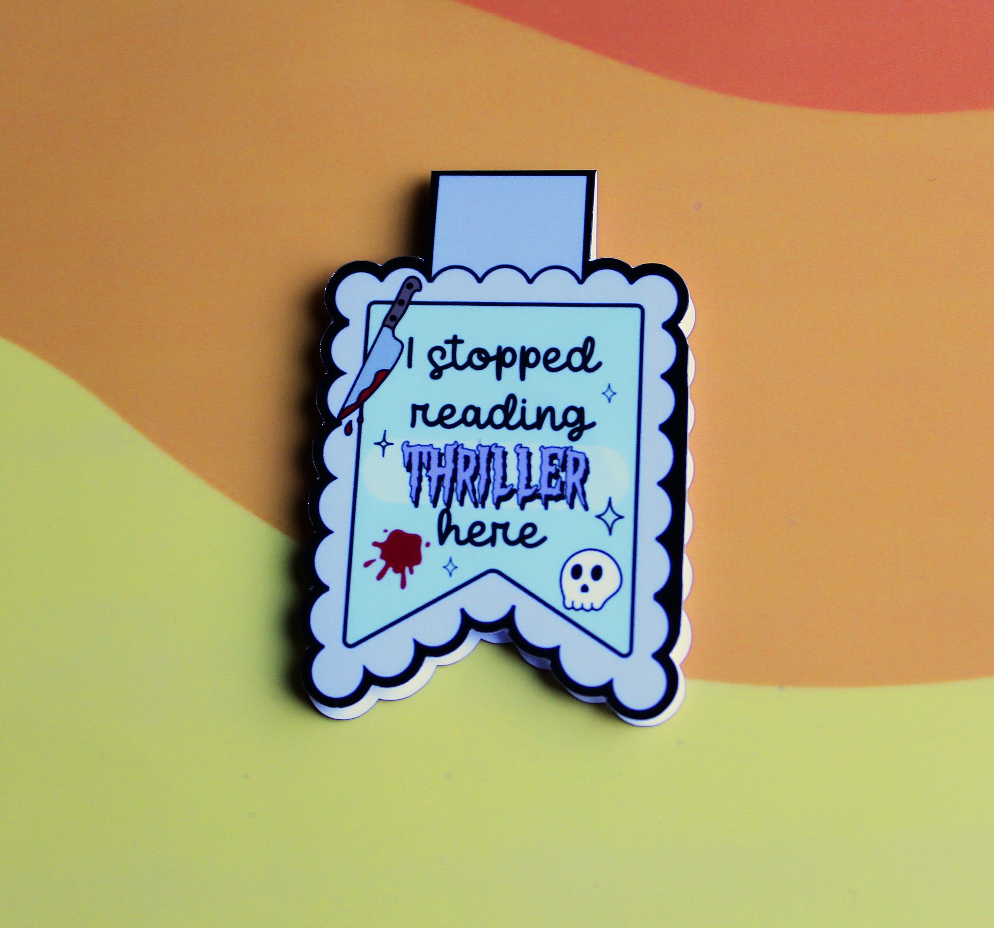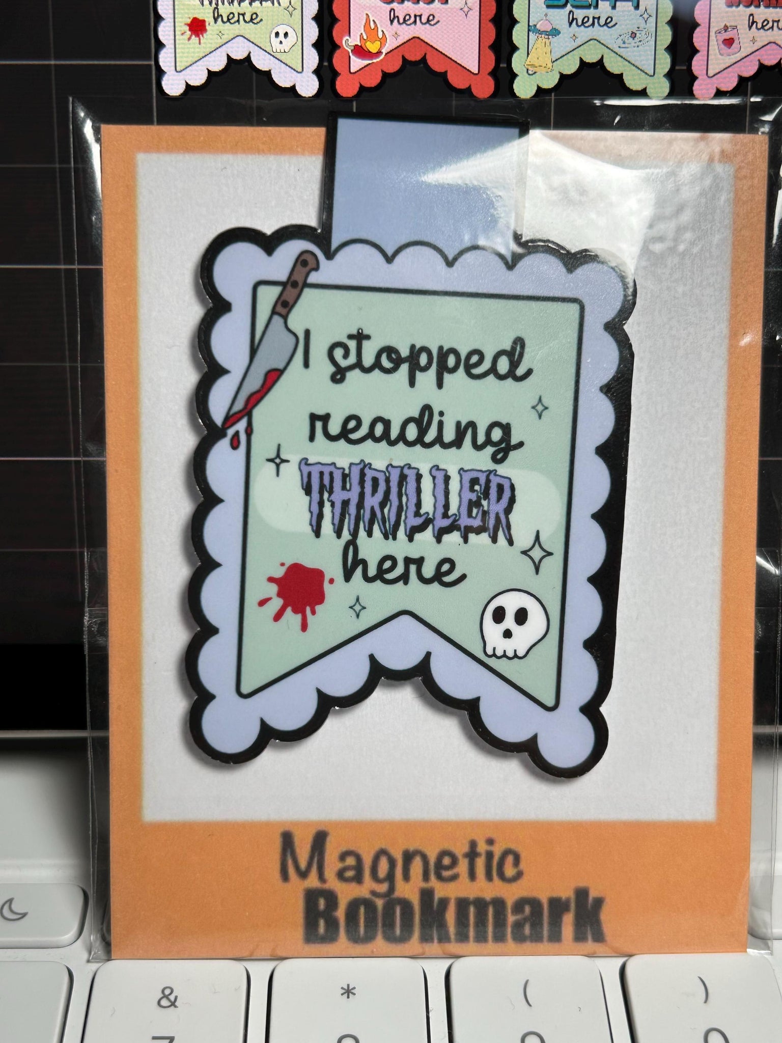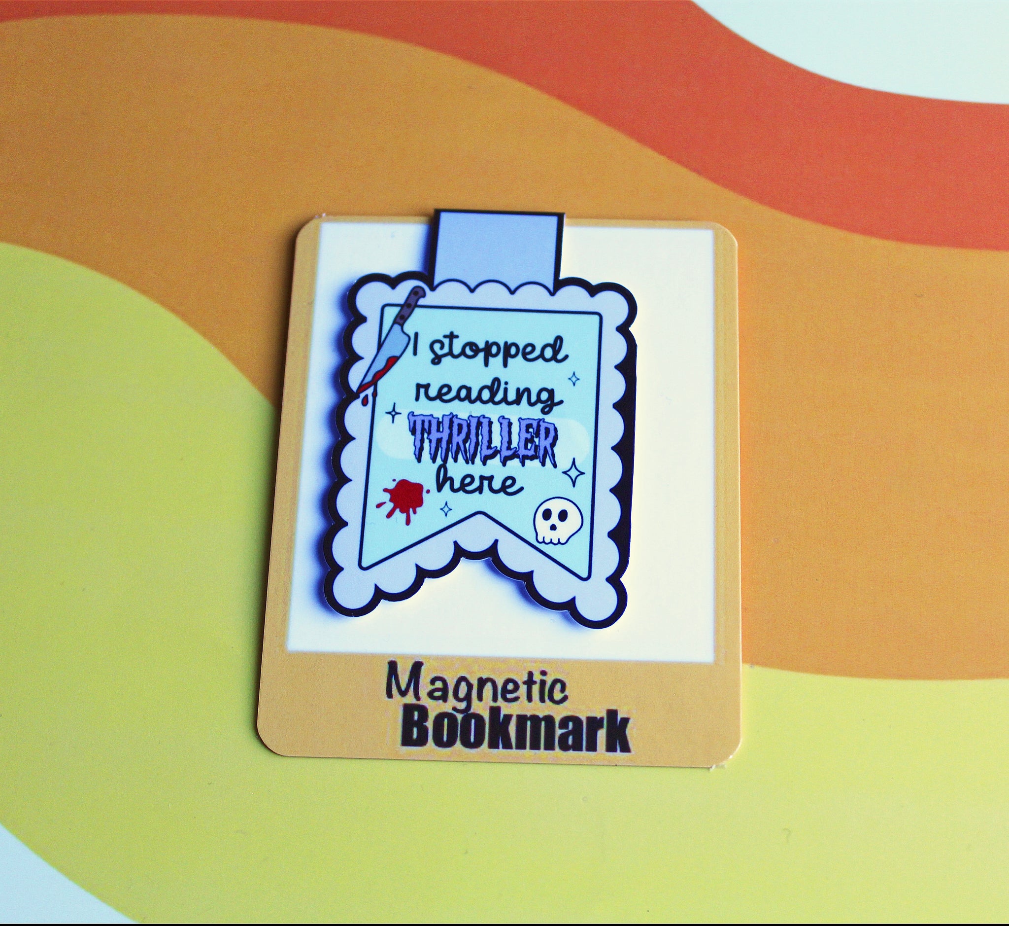 This “I Stopped Reading Thriller Here” magnetic bookmark is the perfect mix of creepy and cute! Designed with a glossy laminated finish and sturdy magnets, it keeps your page safe while adding a fun, bookish touch to your latest suspense read.