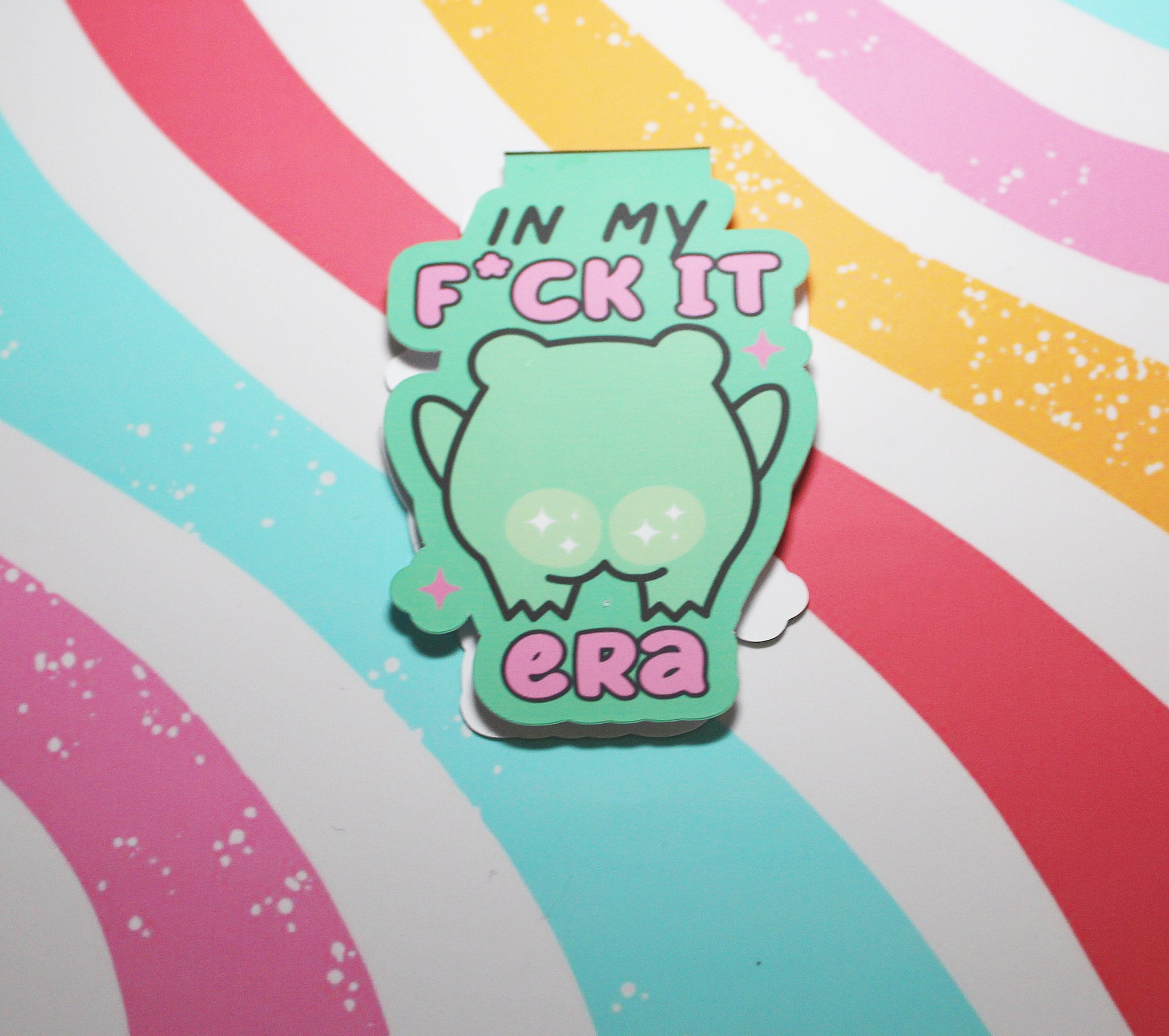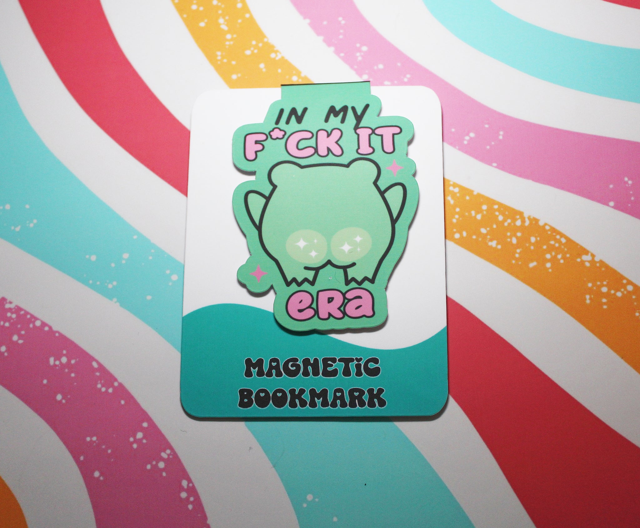 • “In My F*ck It Era” Magnetic Bookmark – Cute Frog Bum Design | Matte Finish | Sassy Pastel Bookmark