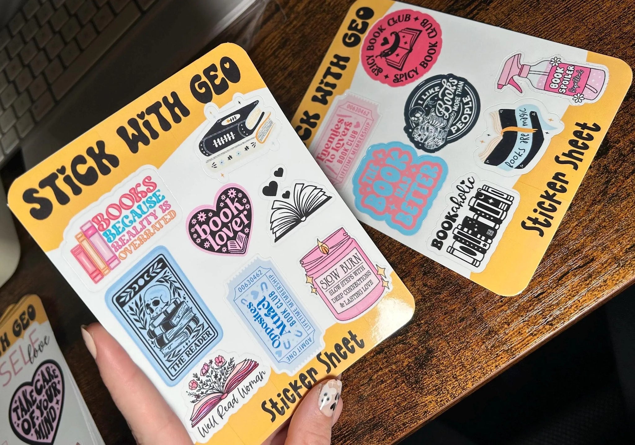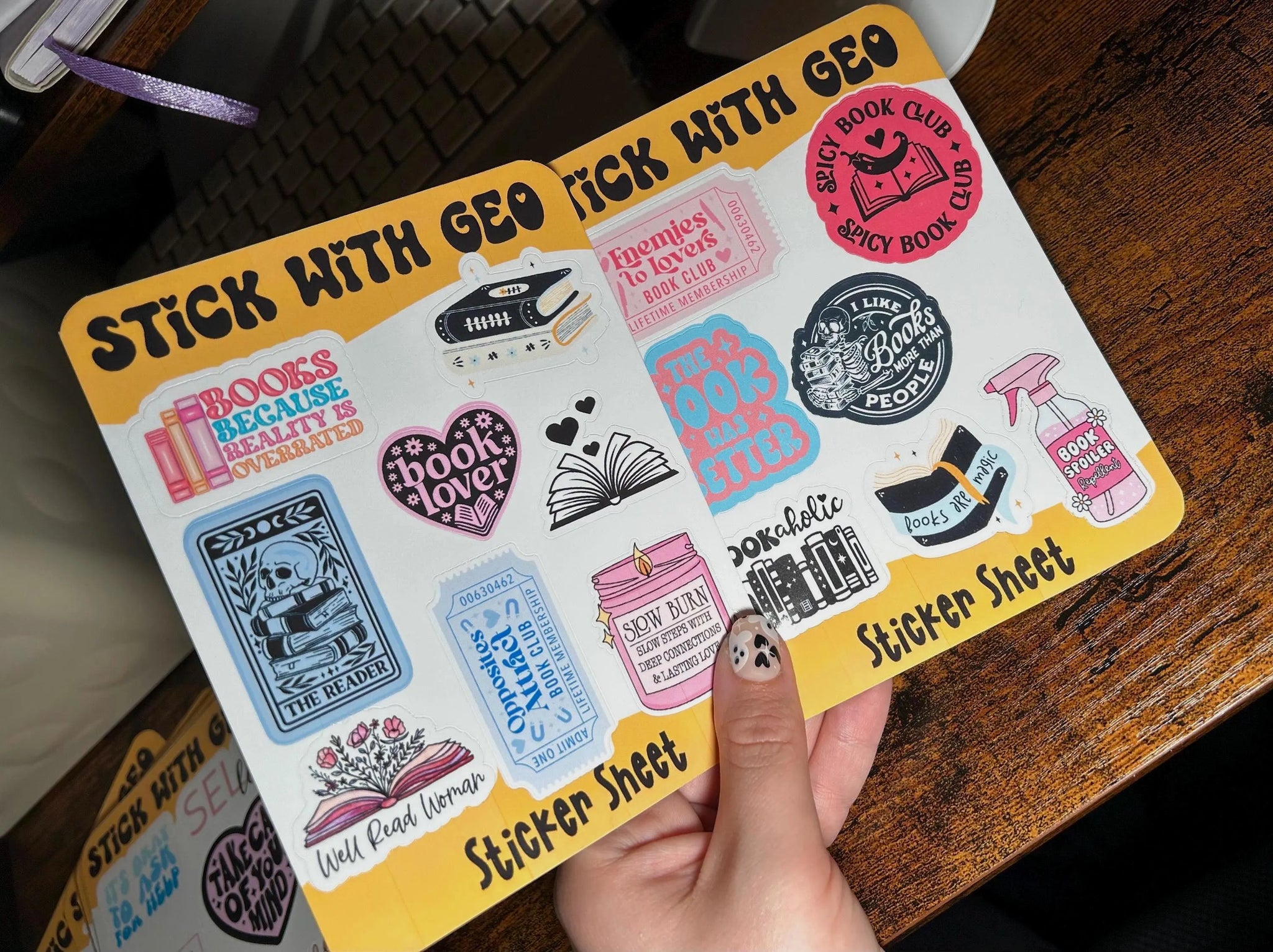 Celebrate your love for reading with these bookish sticker sheets from Stick With Geo! Each 4.5” x 6” sheet features fun literary quotes and cozy designs — from “The Book Was Better” to “Spicy Book Club” and “Book Lover”.