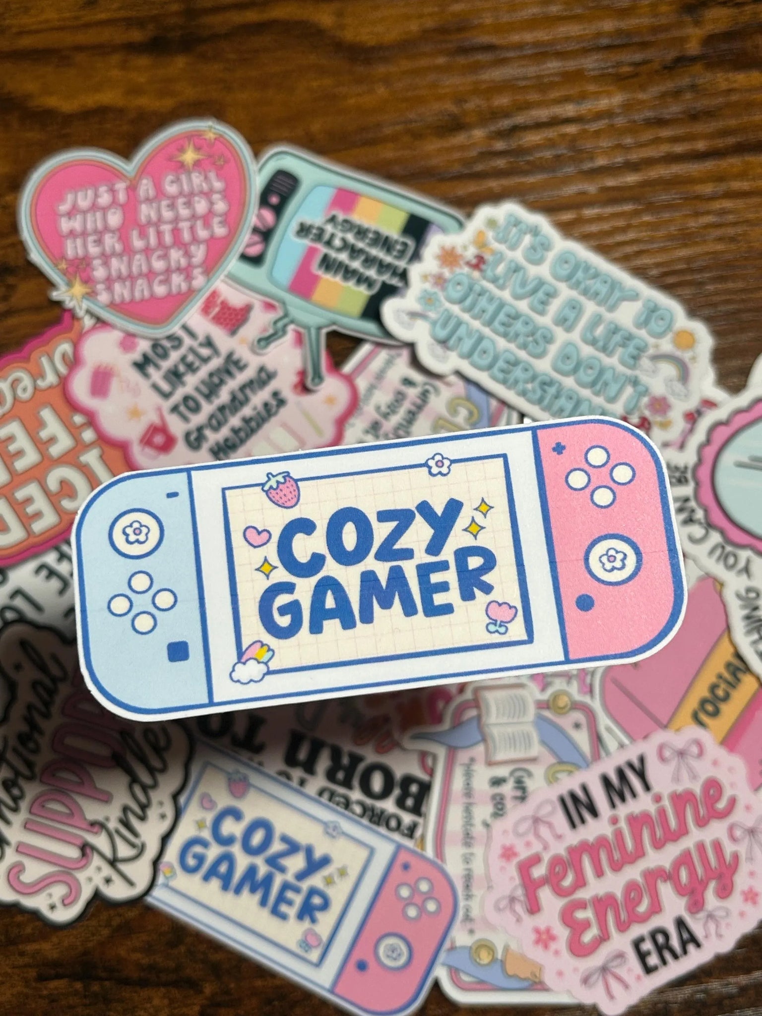Perfect for every gamer who loves soft aesthetics and cozy vibes, this “Cozy Gamer” sticker from Stick With Geo is a must-have!
