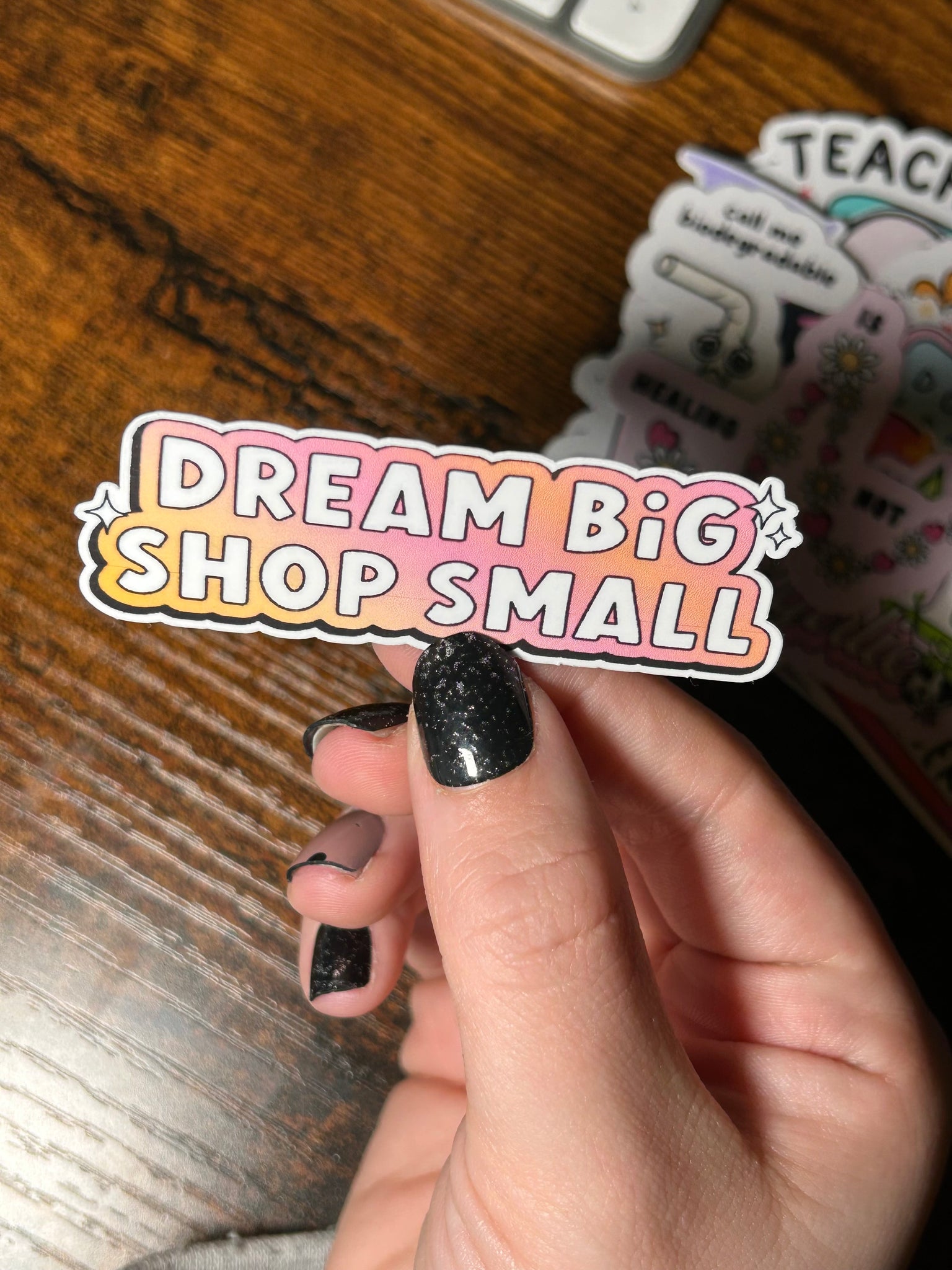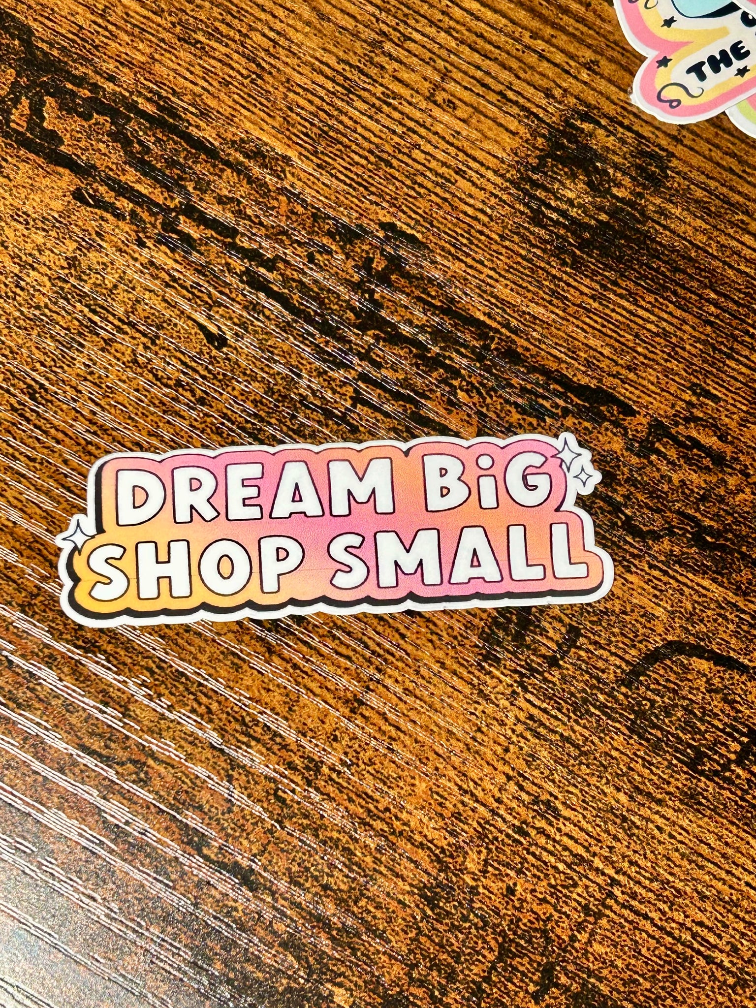 This “Dream Big Shop Small” sticker is the ultimate reminder to back your favourite makers and dreamers! With soft gradient tones and a glossy finish, it’s perfect for laptops, packaging, planners, or anywhere you want to spread small business love.