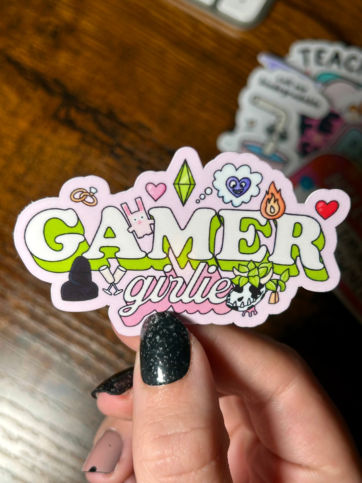 This “Gamer Girlie” sticker is a fun, colourful nod to your favourite gaming life — from cozy Sims sessions to late-night boss battles. With cute doodle icons and a glossy finish, it’s perfect for decorating your console, laptop, water bottle, or game setup.