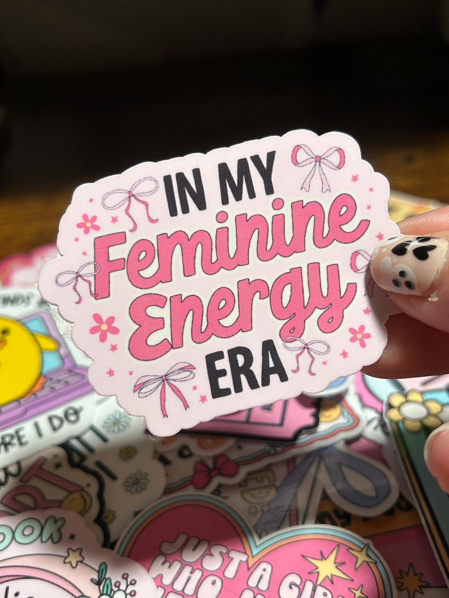 Designed in a girly coquette style with bows, pink hues, and dainty stars, it’s a perfect reminder to embrace your feminine energy and confidence — in style!