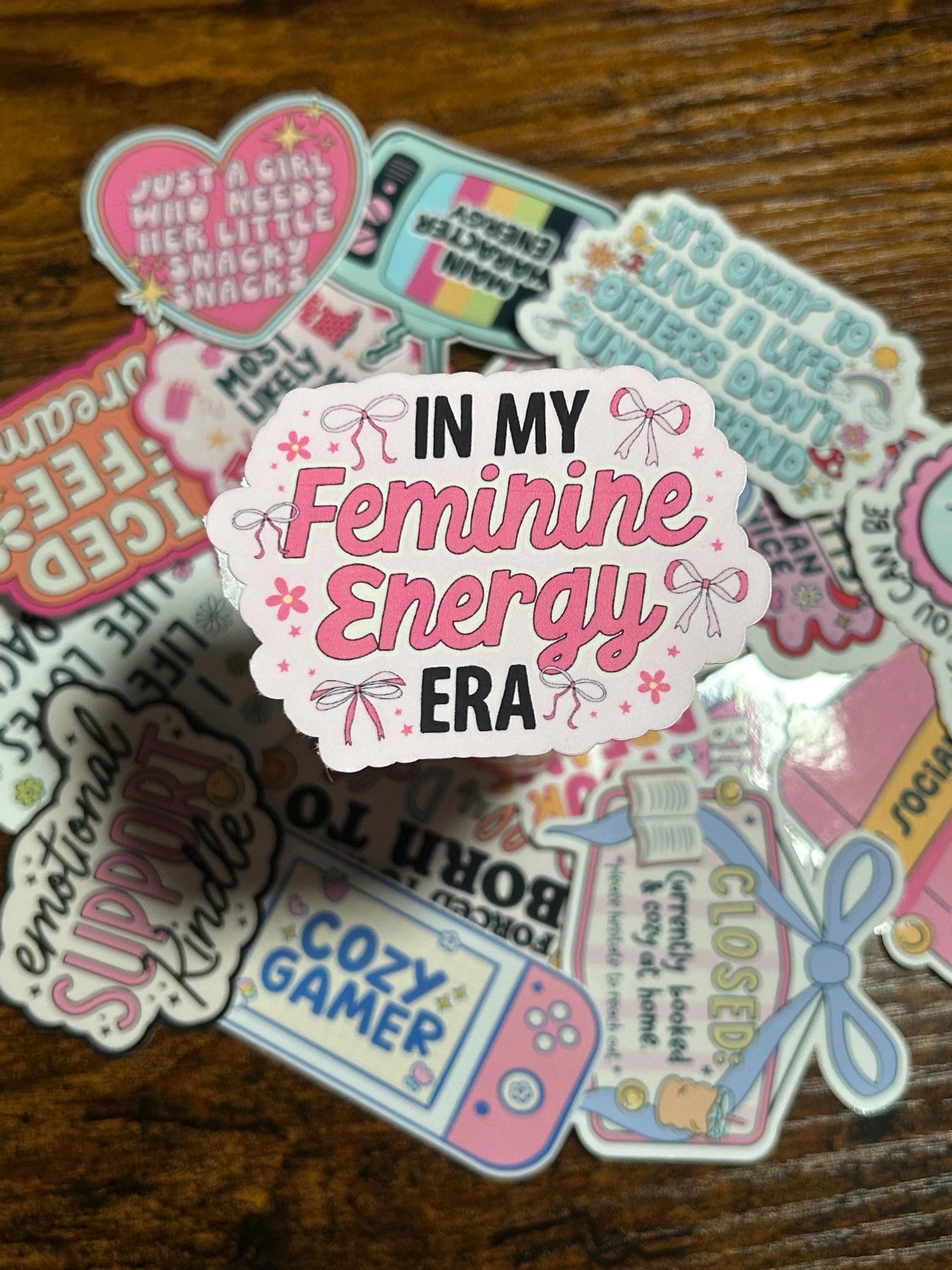 Step into your soft, empowered side with this “In My Feminine Energy Era” sticker from Stick With Geo.