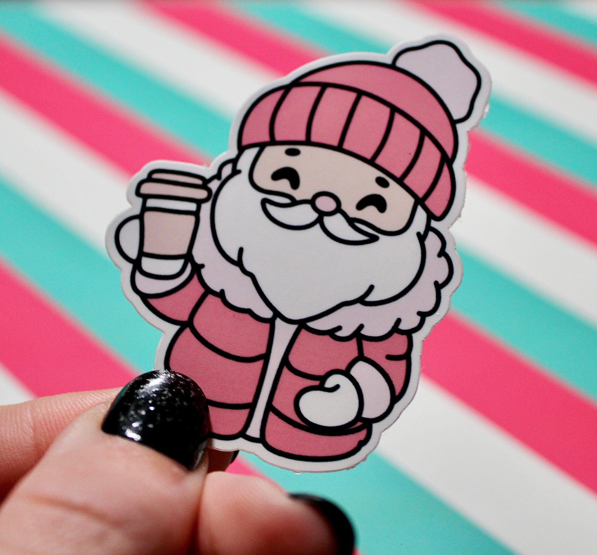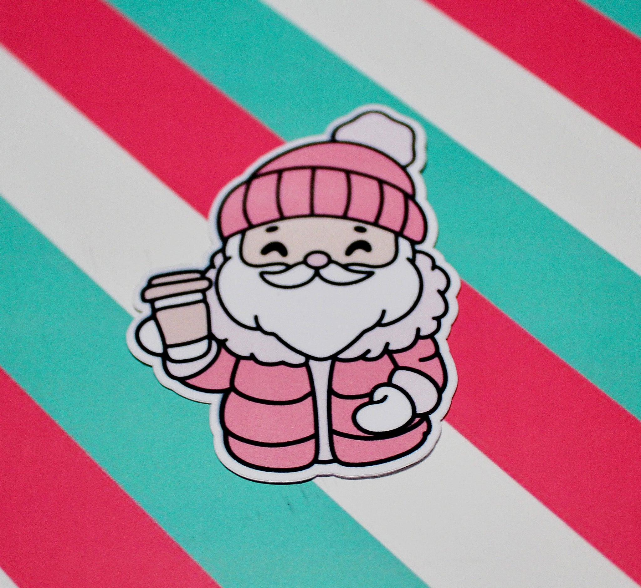 Bring some pastel Christmas magic to your winter collection with this Pink Cozy Santa Sticker! This cute Santa design features a soft pink puffer jacket, matching beanie, fluffy trim and a festive hot drink — perfect for cosy aesthetic lovers and anyone who wants a more modern, pastel twist on traditional Christmas characters.