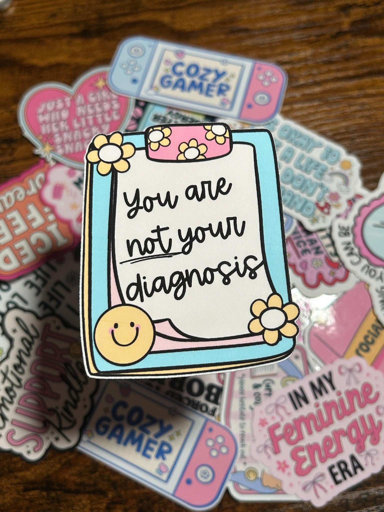 This “You Are Not Your Diagnosis” sticker from Stick With Geo is a comforting daily reminder that you are so much more than your mental health label.