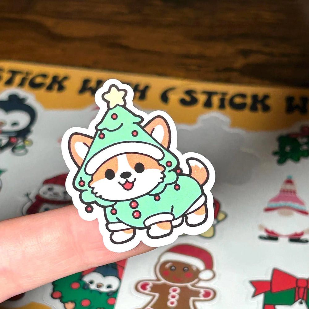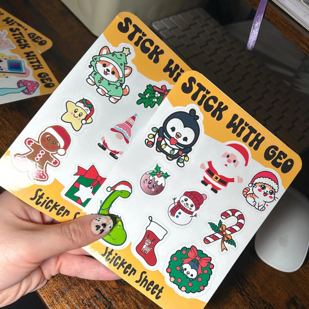 Kawaii Christmas Waterproof Sticker Sheets: Glossy Holiday Characters, Laptops, Water Bottle, Kid Crafts (Set of 2)