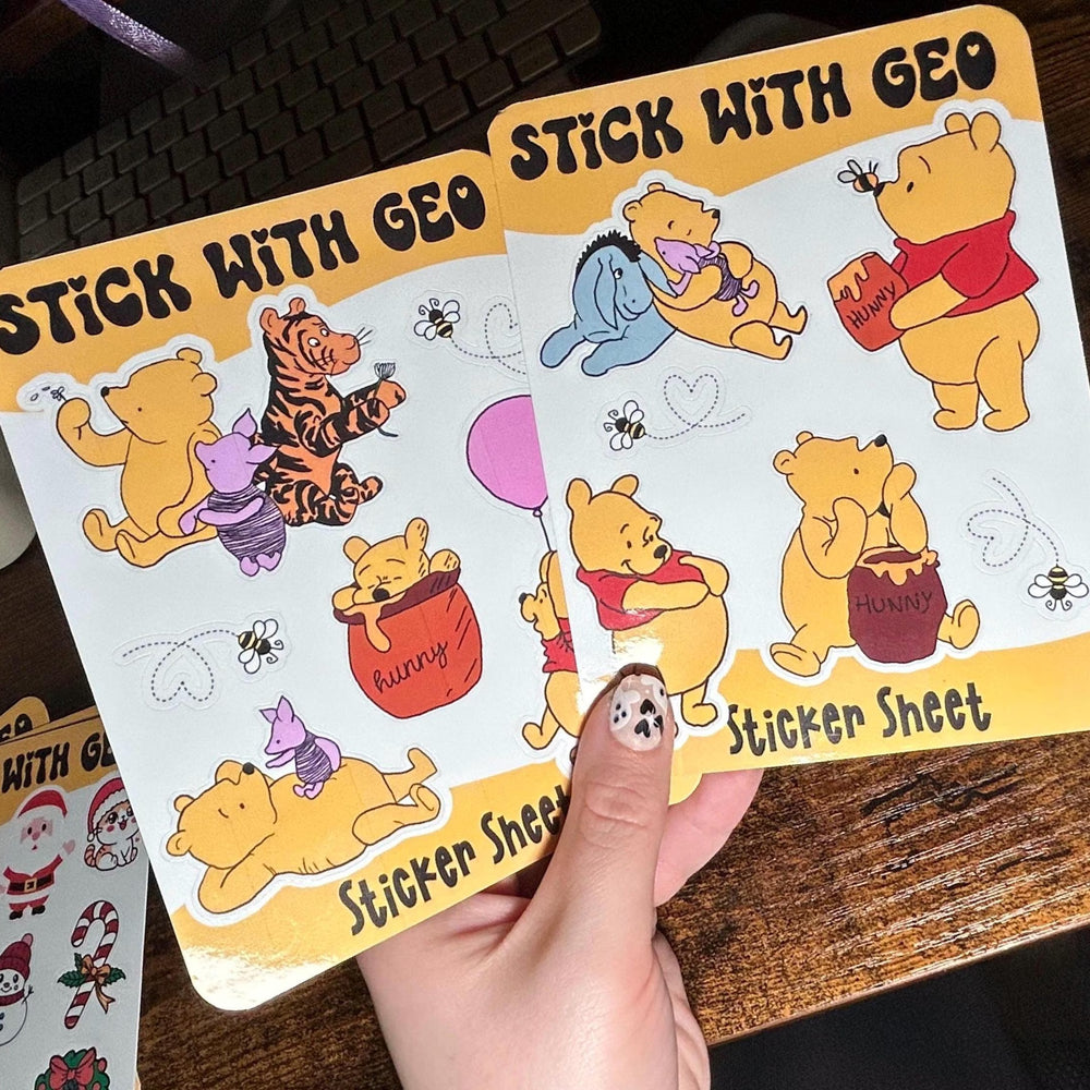 Cute nostalgic aesthetic bear Waterproof Glossy Vinyl Sticker Sheets: Cozy Characters (Set of 2) Laptops, Water Bottle, Scrapbook
