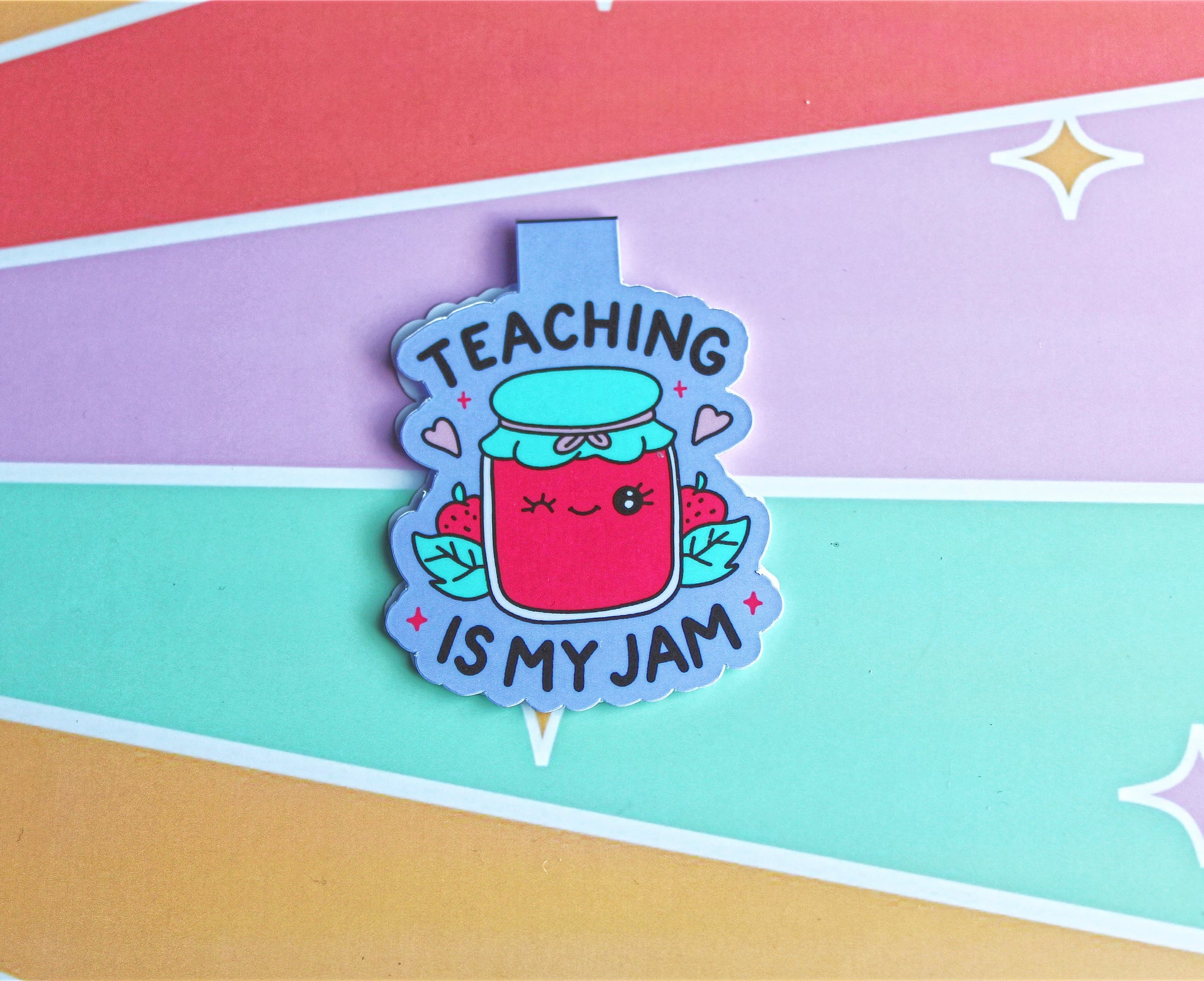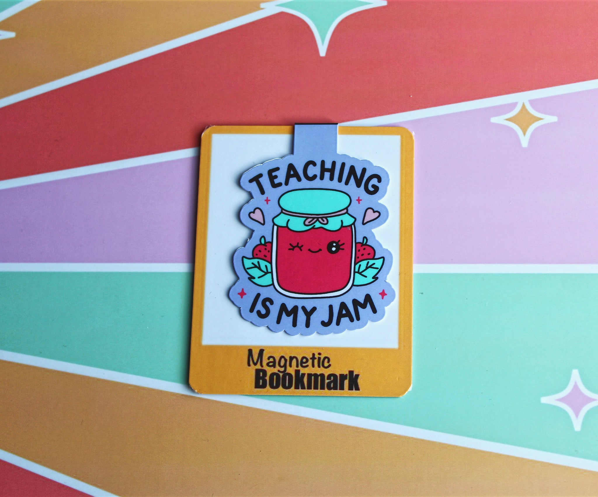 Bright, punny, and full of joy — this Teaching Is My Jam magnetic bookmark makes the perfect gift for teachers, TAs, or anyone who loves reading and teaching!